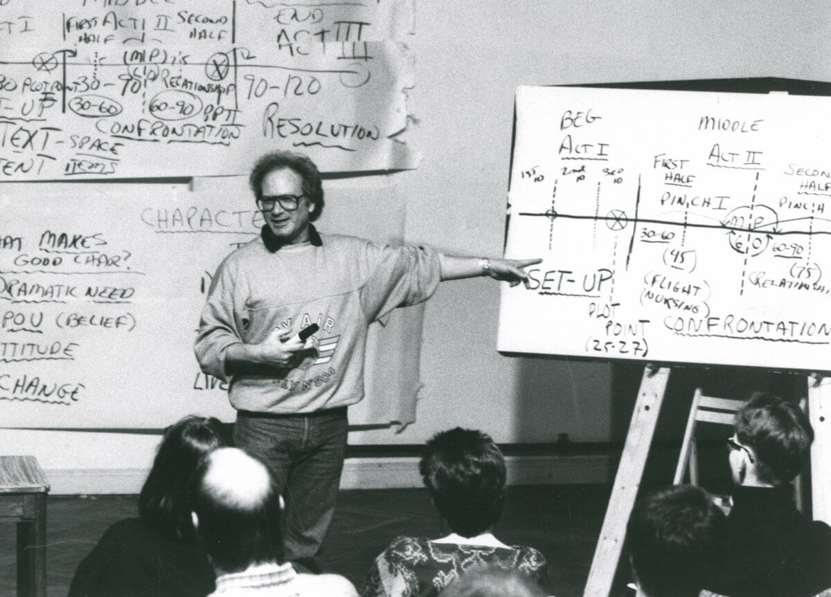 Syd Field ist Autor der weltbekannten Standartwerke „Screenplay“ und „The Screenwriter‘s Workbook“. Als Autor, Produzent und Cheflektor für US-amerikanische Produktionsgesellschaften (David L. Wolper Productions, Cinemobile Systems, Cine Arts) machte er Erfahrungen, die seine Seminare in USA, Kanada, Brasilien, Australien, Norwegen zu hervorragenden Werkstätten werden lassen. Seit 1988 unterrichtet er im Theaterhaus Berlin. Behandelt werden Methoden und Modelle, die für die Vorbereitung und Ausführung des Drehbuchschreibens erforderlich sind. Das Grundmuster der dramaturgischen Struktur, das Handwerk zur Entwicklung von Figuren, die Fähigkeit zum szenischen Denken. Die Rohfassung eines Drehbuchs wird von Anfang bis Ende strukturiert und geschrieben. Ziel ist, die Teilnehmer zu befähigen, eine Filmidee dramaturgisch zu strukturieren und in eine dramatische Erzählform zu bringen. Ausgehend von einer Drei-Sätze-Idee, die Thema, Aktion und Hauptfigur beinhaltet, schreiben die teilnehmenden Autoren ein Kurzfilm- oder Fernsehfilmdrehbuch mit einer Länge von dreißig bis sechzig Minuten. Ausgewählte Themen wie „Die Arena der Geschichte“, „Die Dynamik der Charaktere“, Widerspruch und Bilder“ werden inhaltlich vertieft und komplex behandelt. Anhand von Filmausschnitten werden gute oder schlechte Beispiele vorgestellt. Ziel ist, Rezepte und Vorschläge zur optimalen Gestaltung von Drehbüchern für den derzeit existierenden Film- und Fernsehmarkt zu entwickeln.