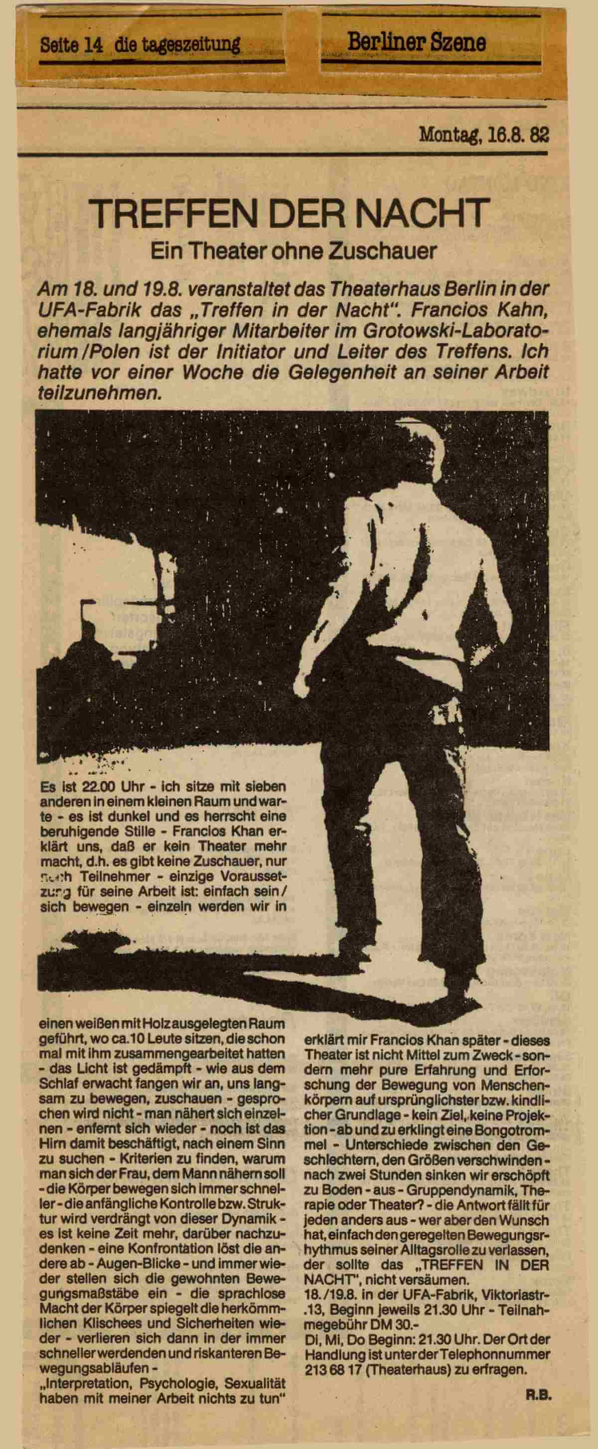 „Die Kraft der Ungewissheit ins Theater einbringen: Die Anstrengung, zu einem endgültigen Werk zu gelangen, raubt viel von wilder und frischer Unreife. In einer Art Sublimierung des technischen und wiederholenden Erlernens versperrt sich diese Anstrengung dem grausamen und unwiederholbaren Leuchten. Versperrt sich auch dem Wachsen der werdenden Kraft und dem unmittelbaren Schauer, das Unwiederholbare des Werdens – wo bleibt der Platz zur Begegnung? Darum muss ich mich bemühen, über jene Methode des Tanzes nachzudenken, die nichts von der Dynamik dieser Kräfte verliert.“