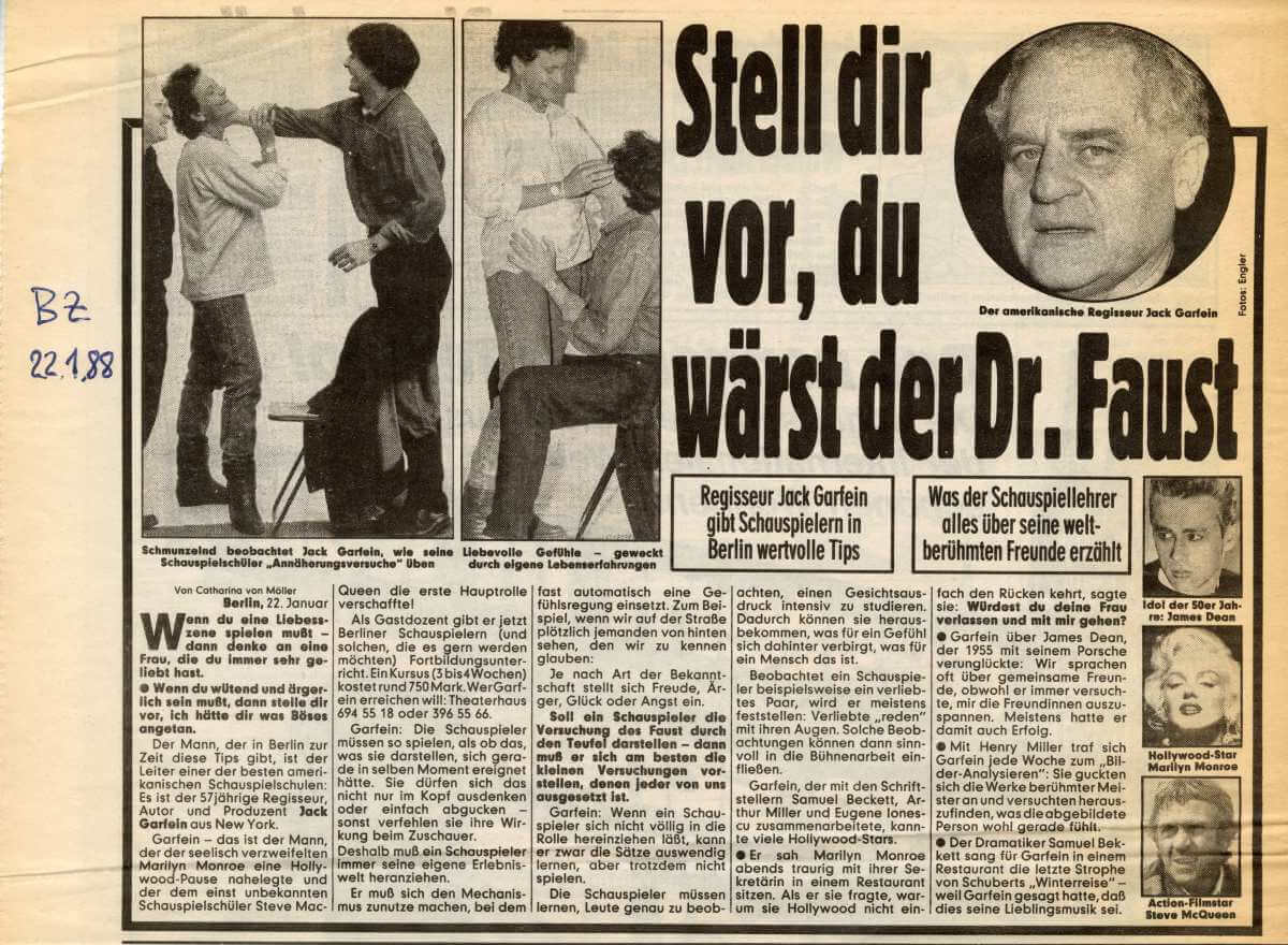 „Theoretisch sollte der Schauspieler körperlich und geistig gesünder sein als andere Menschen, da er lernt, die menschlichen Verhaltensweisen zu verstehen, wenn er seien eigenen Leidenschaften, seine Liebe, seine Ängste und seinen Zorn in die Charaktere einfließen lässt, die er darstellt. Er wird lernen, sich selbst zu begegnen, nichts vor sich zu verbergen – und dazu bedarf es einer unstillbaren Neugier auf menschliche Natur (aus „A Challenge fort he Actor“)