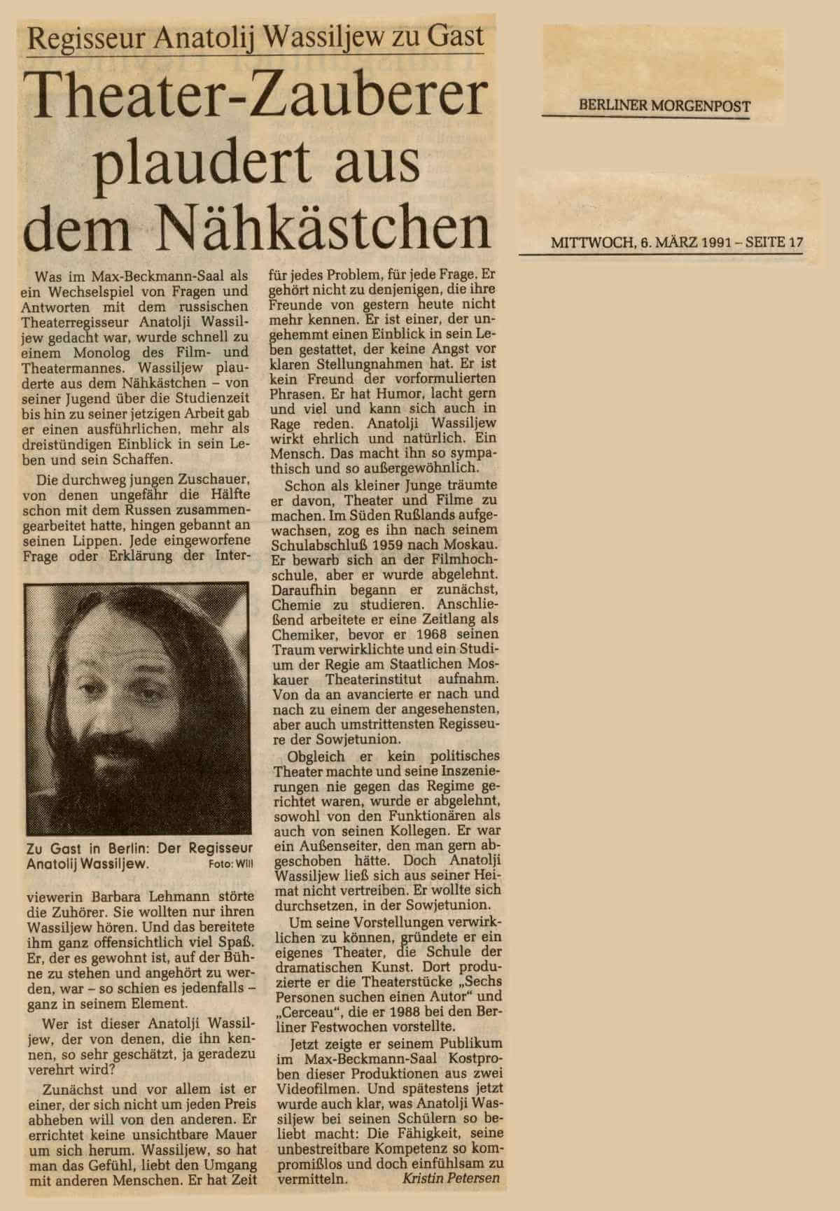 Anatoli Vassiliev - Theater-Zauberer plaudert aus dem Nähkästchen