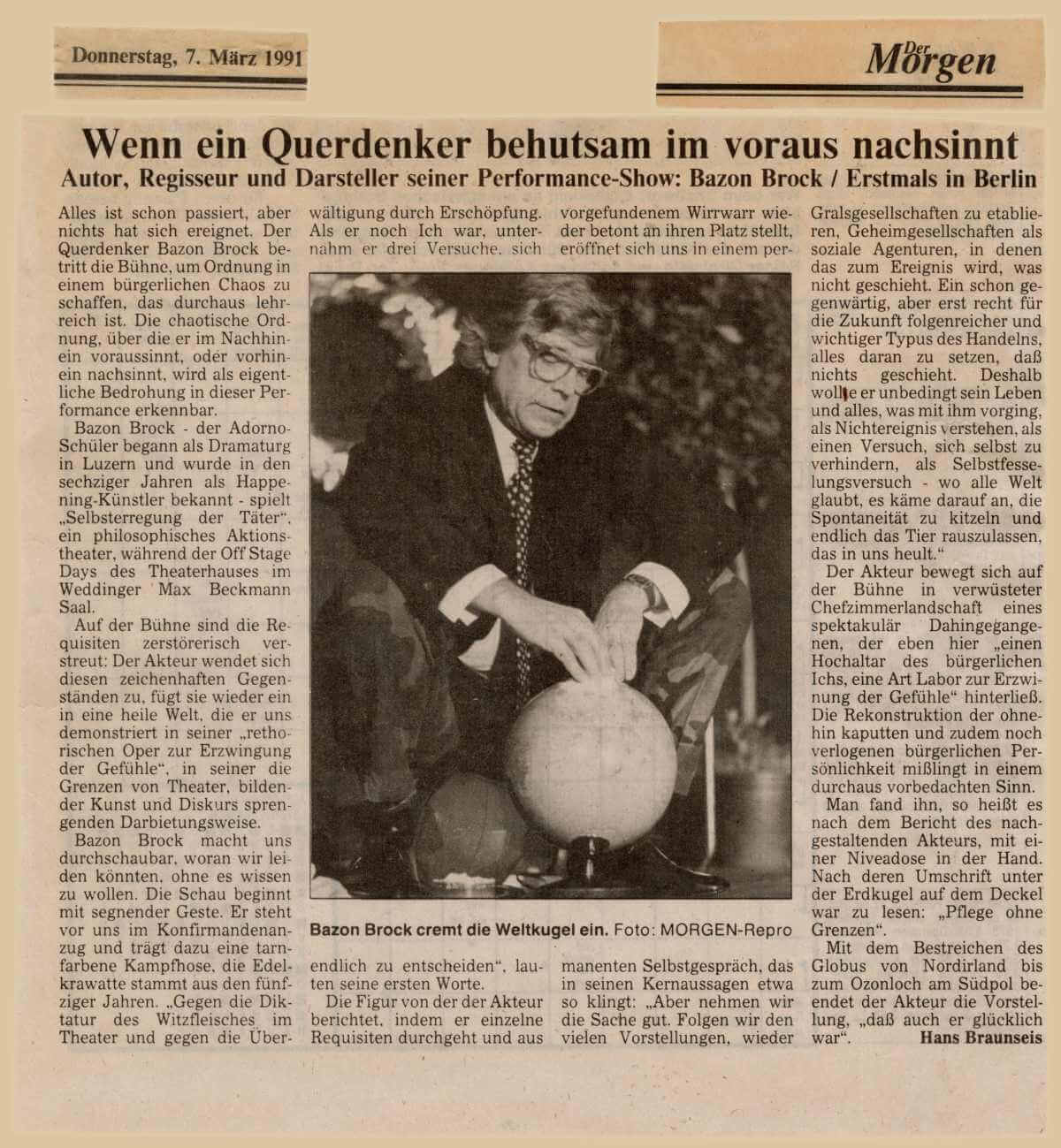 Bazon Brock - Wenn ein Querdenker behutsam im voraus nachsinnt