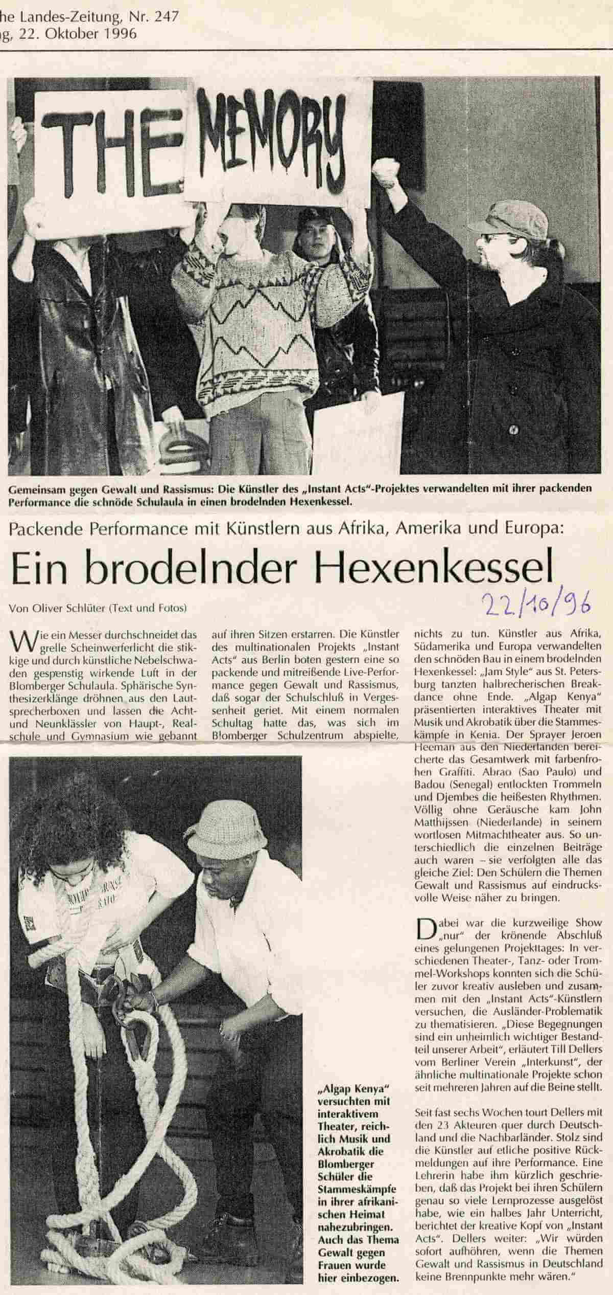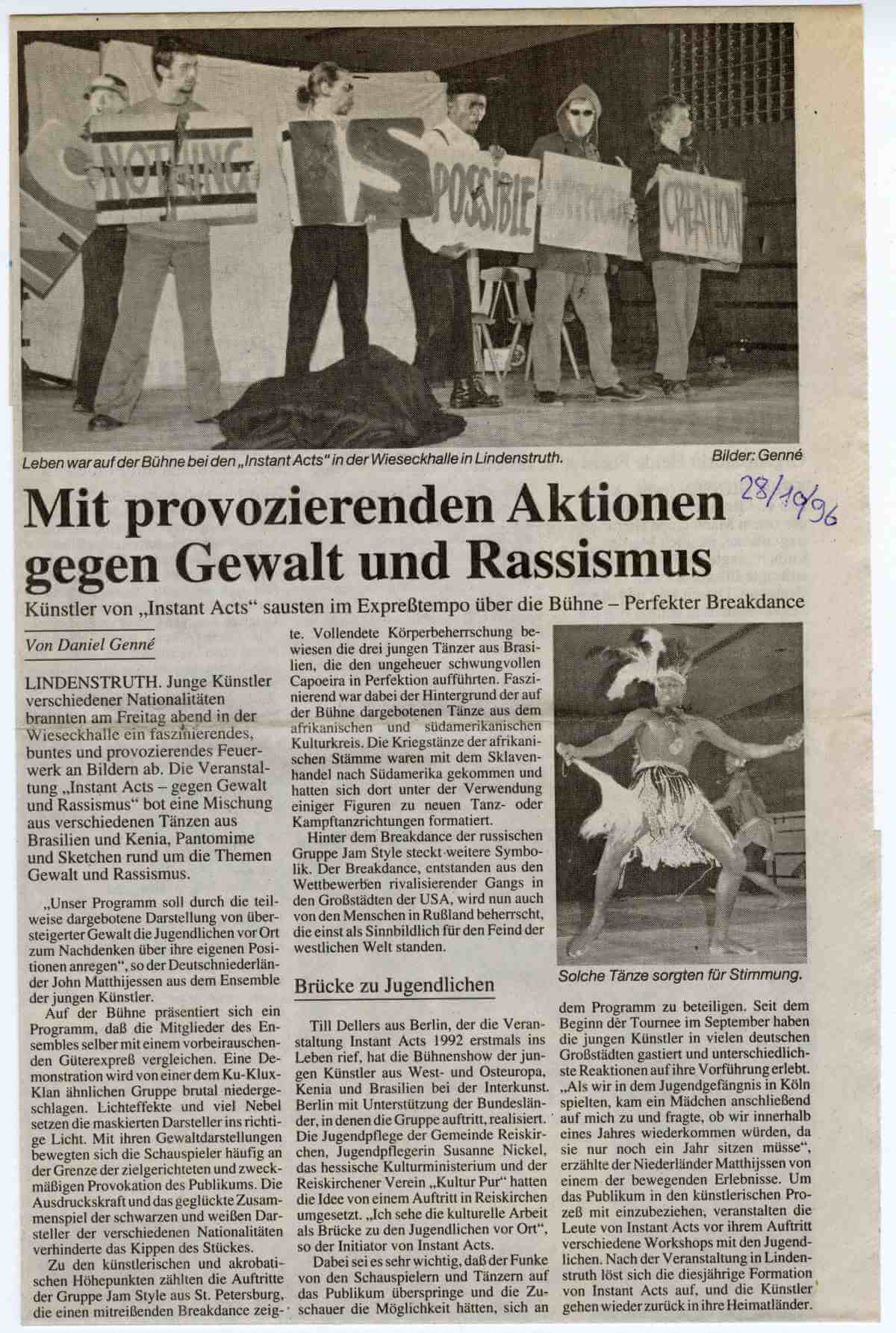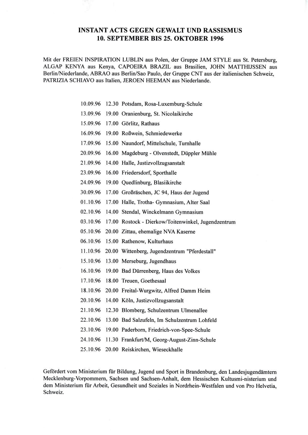 Instant Acts gegen Gewalt und Rassismus Herbst 1996