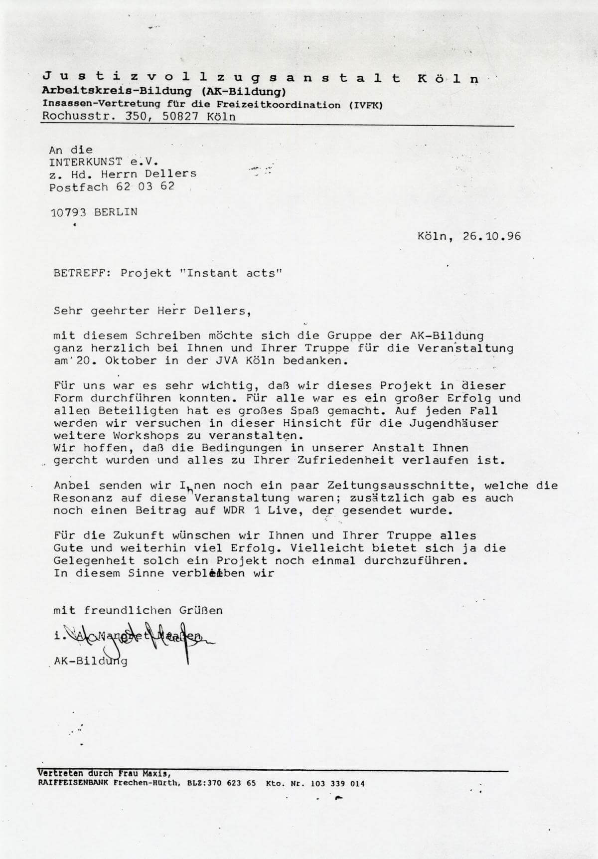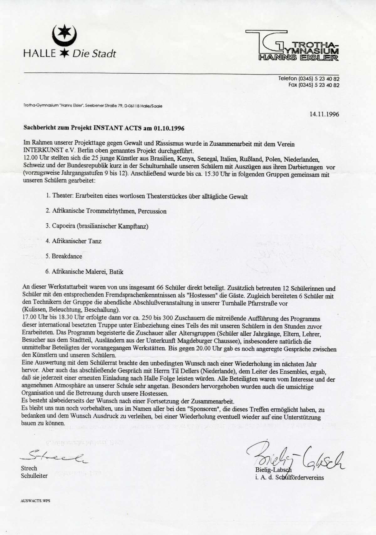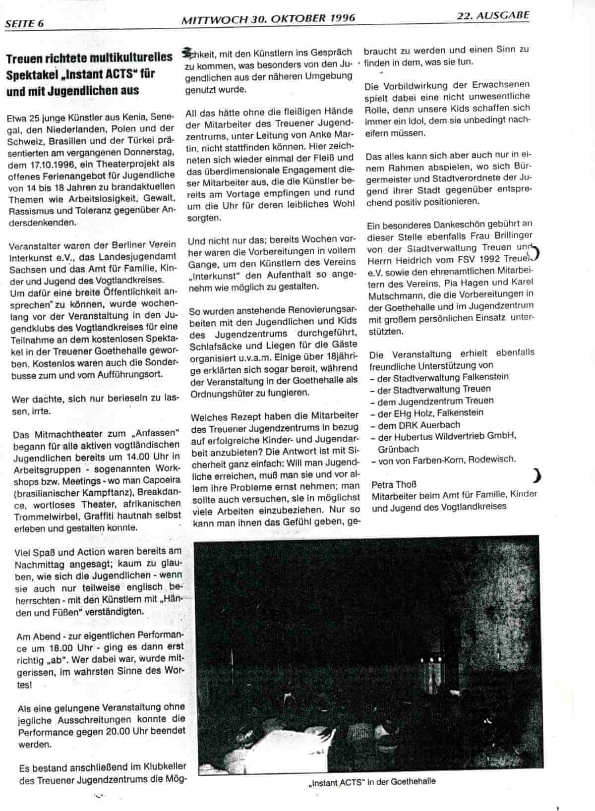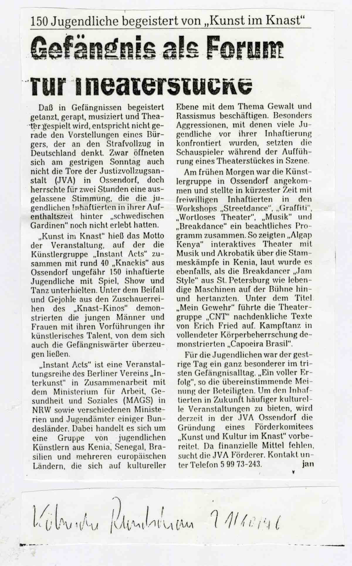 Instant Acts gegen Gewalt und Rassismus Herbst 1996