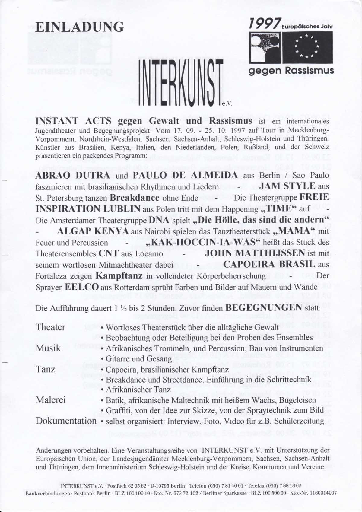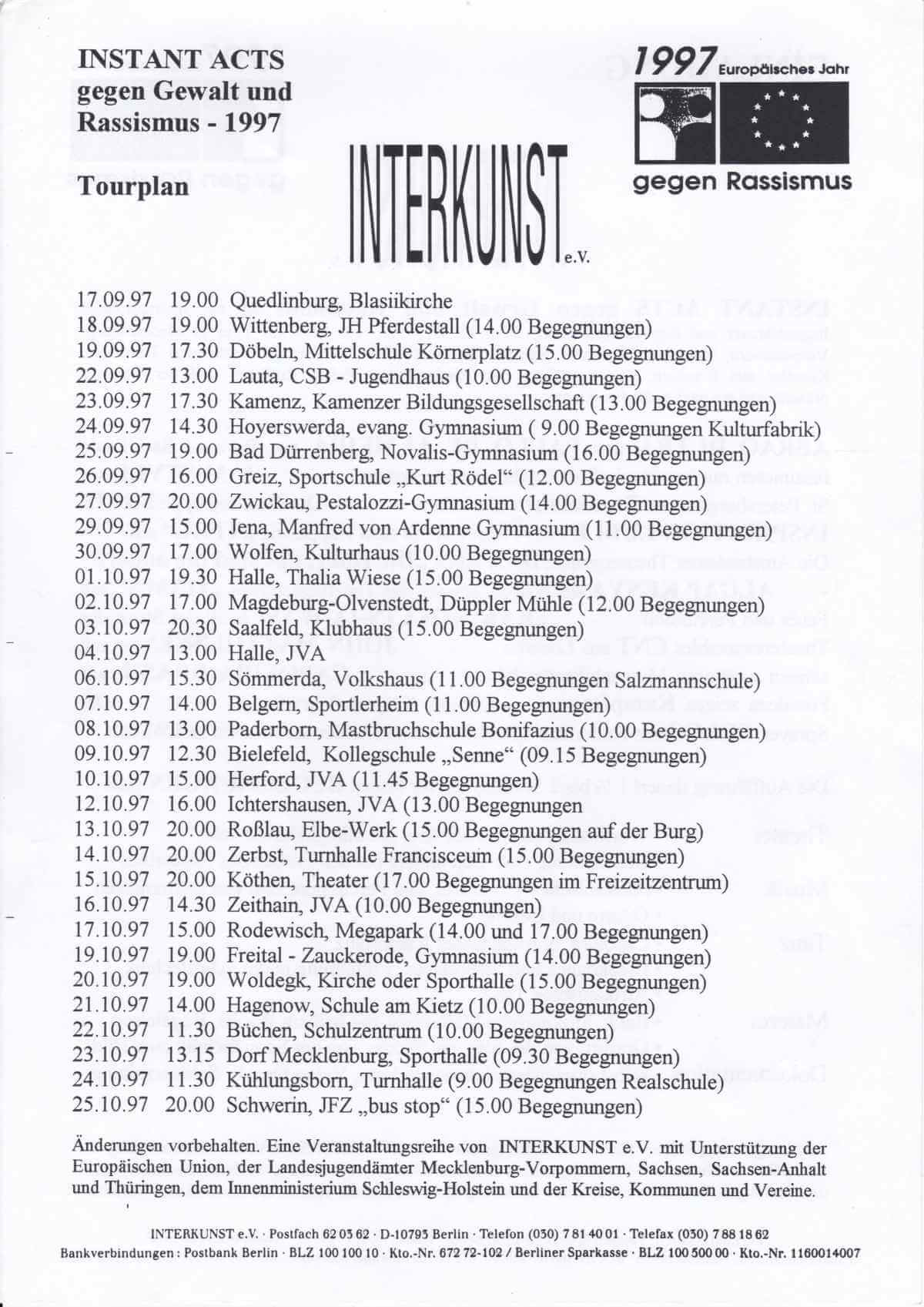 Flyer: Tour 17. September 1997 – 25. Oktober 1997