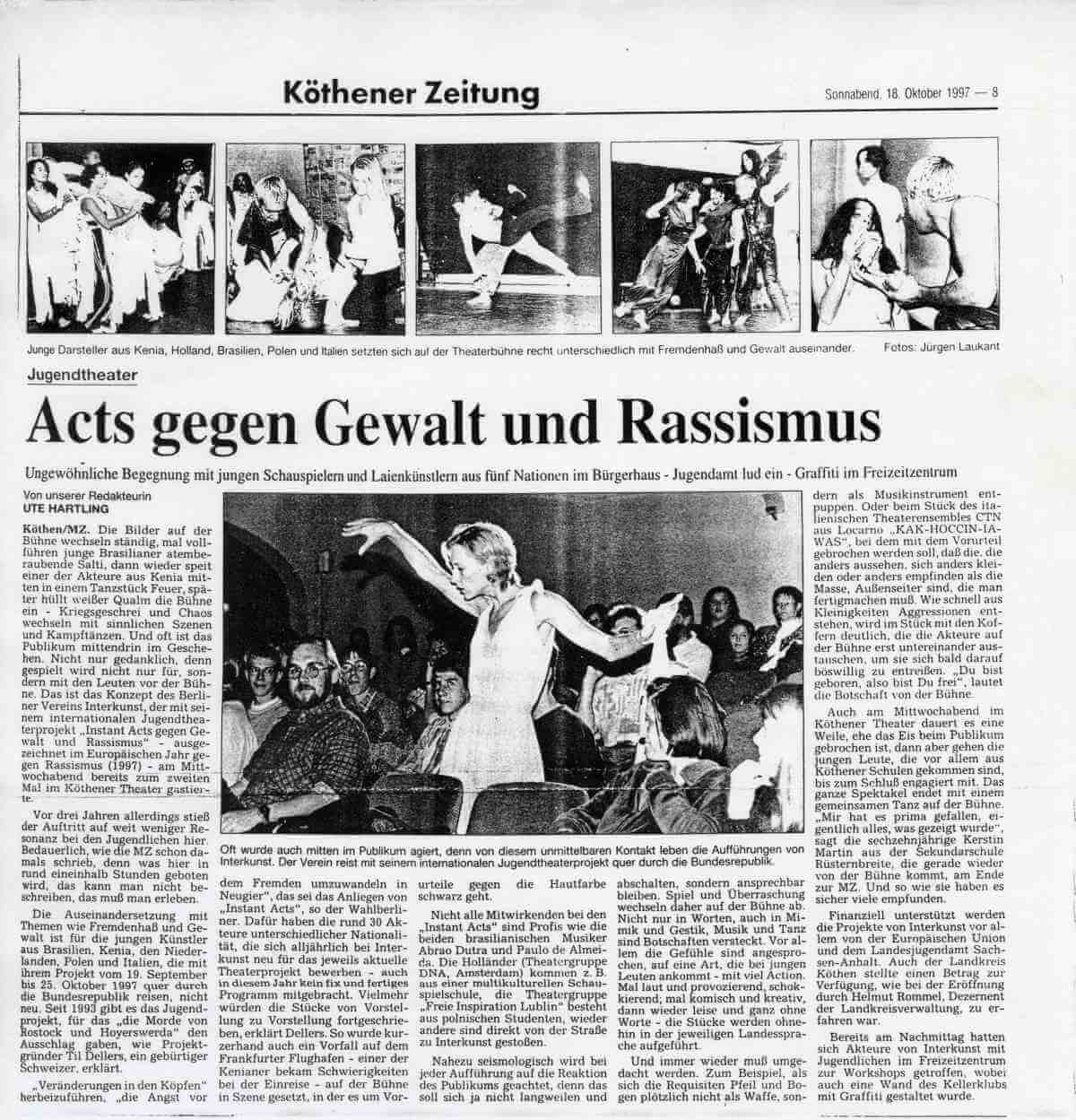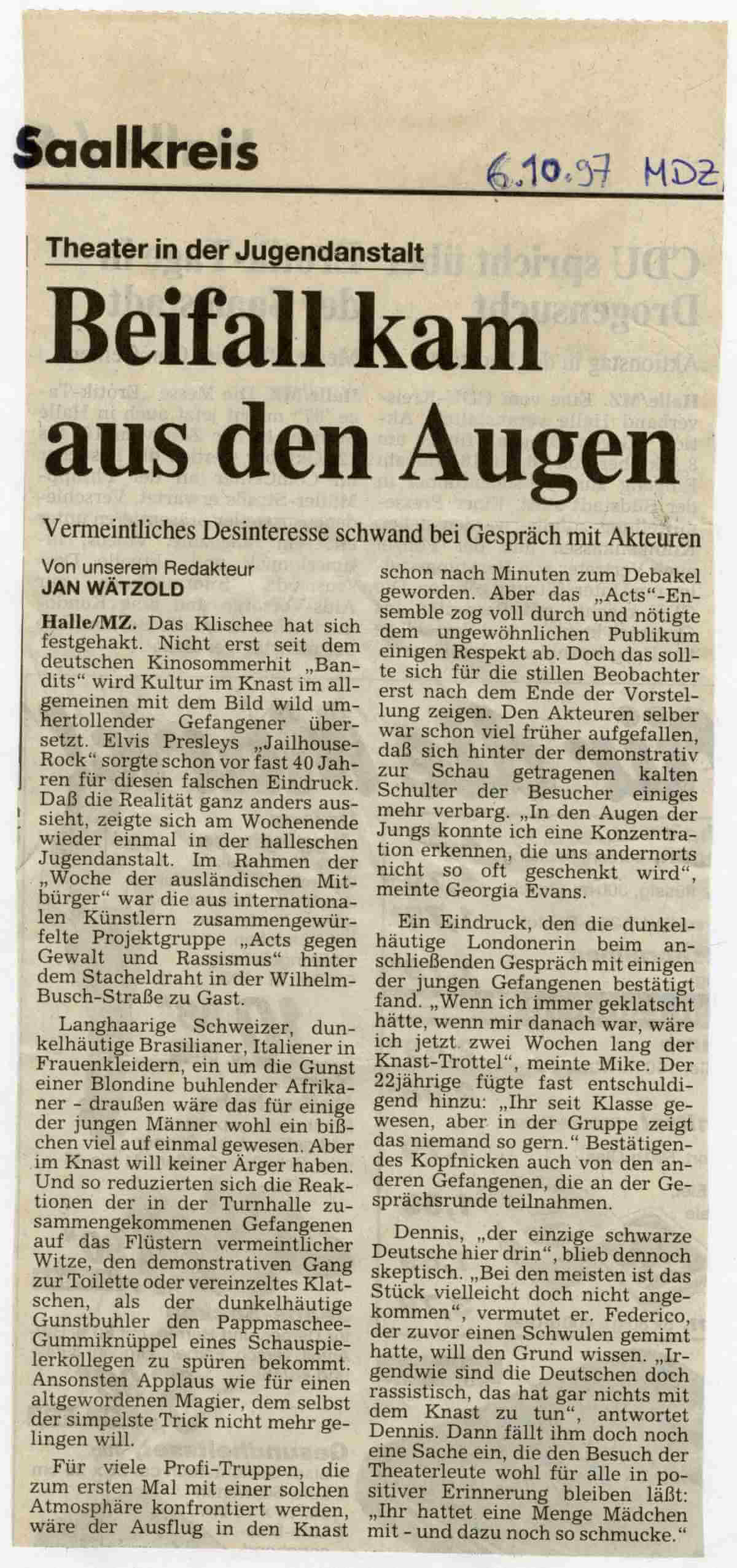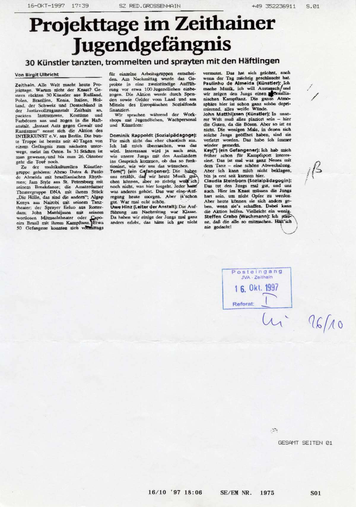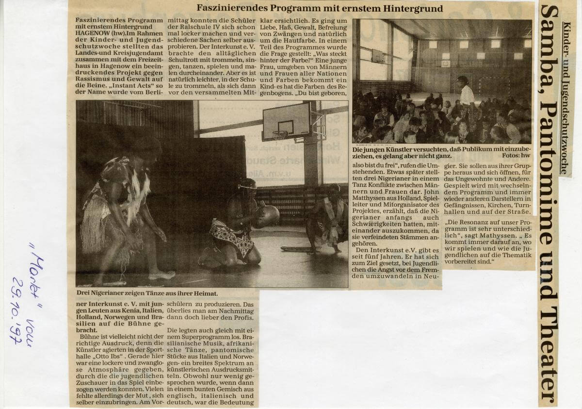 Tour 14.09.-25.10.1997 Backstage, Projekttage