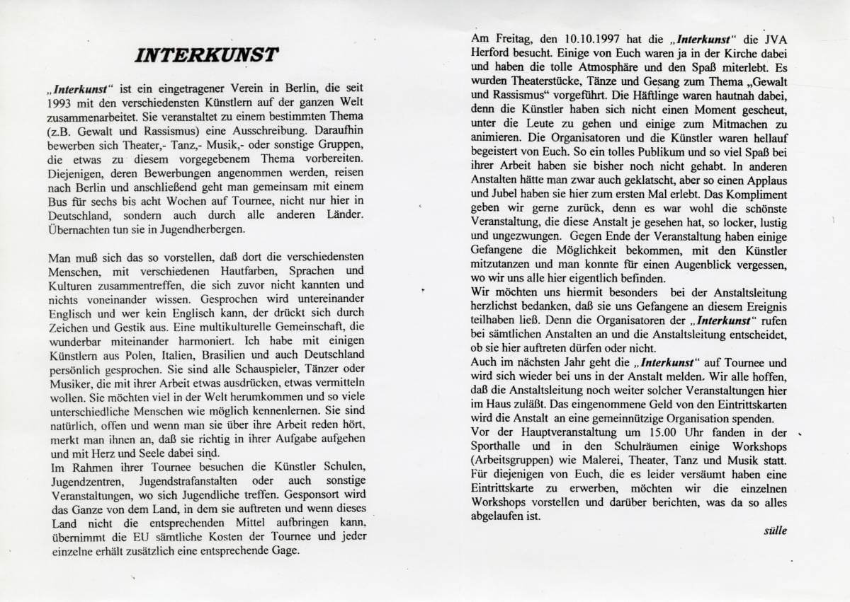 Flyer, Berichte & Tourpläne der Veranstaltung