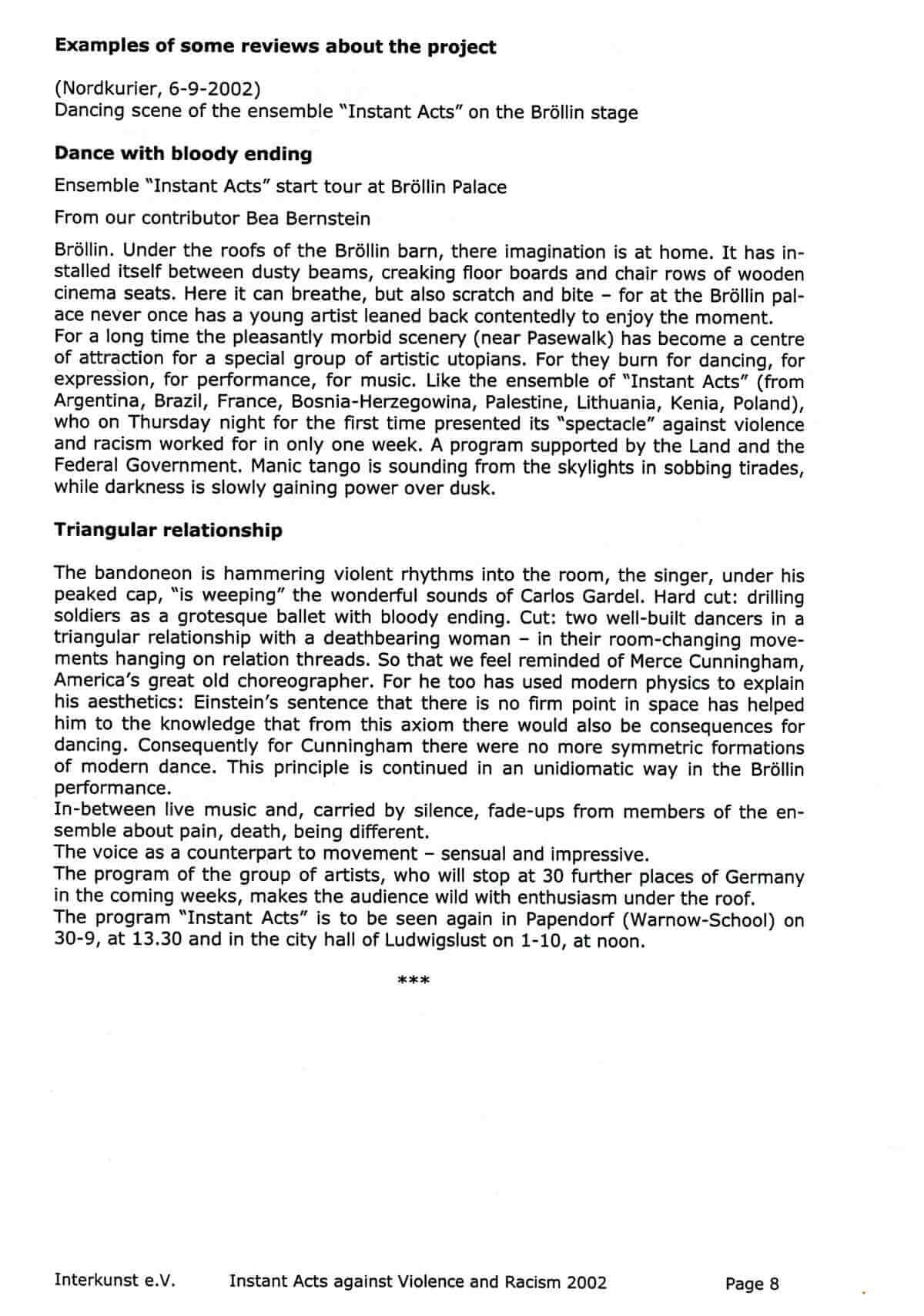 Flyer, Berichte & Tourpläne der Veranstaltung