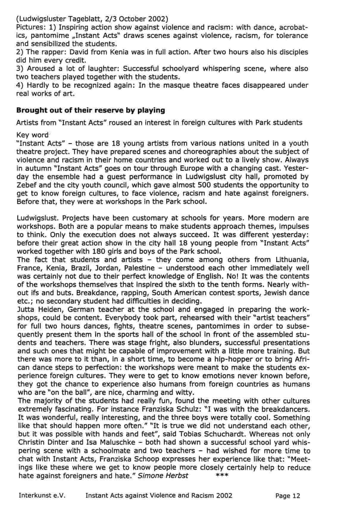 Pforzheim MW – Toleranz mit Theater und Tanz