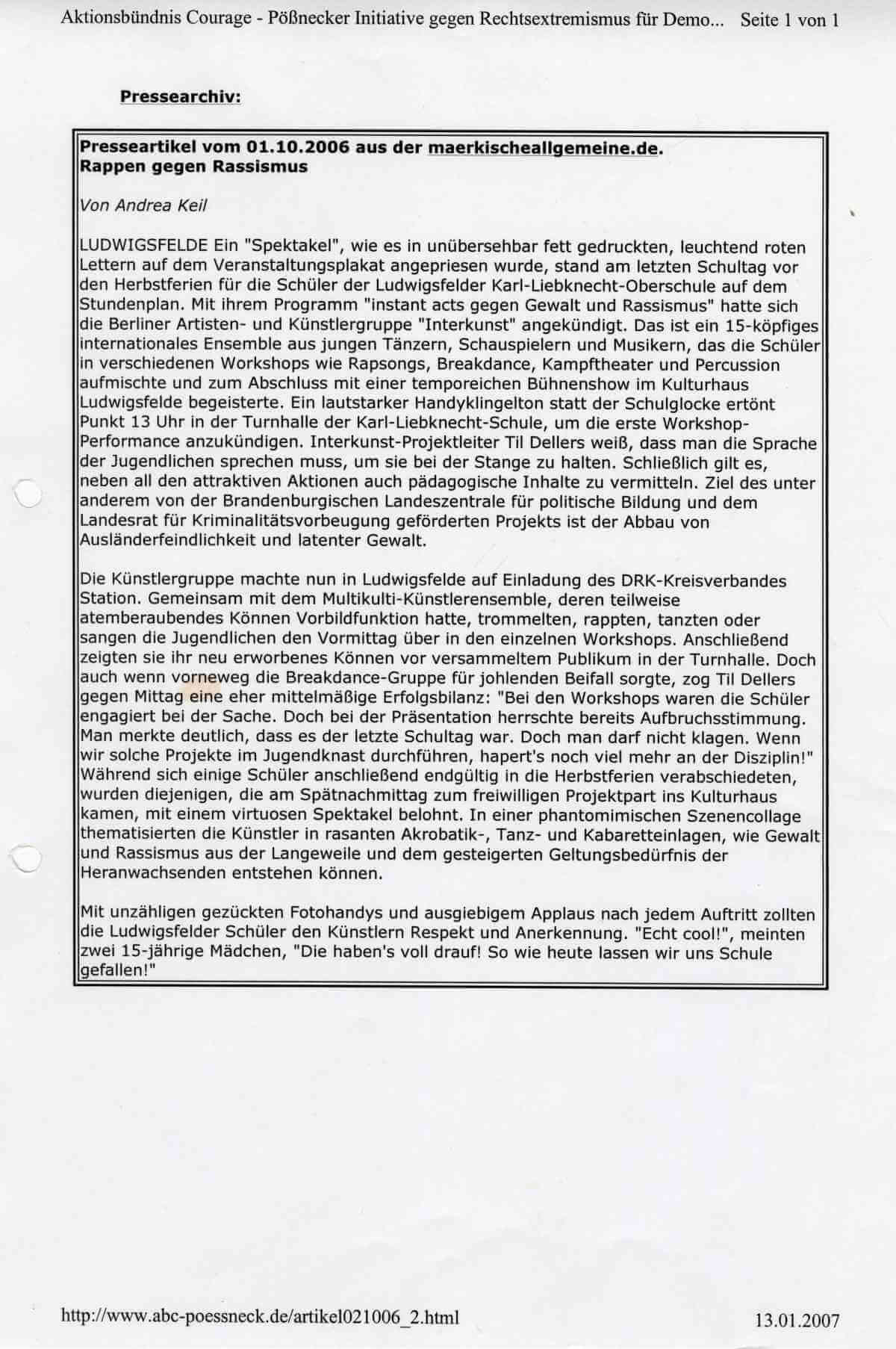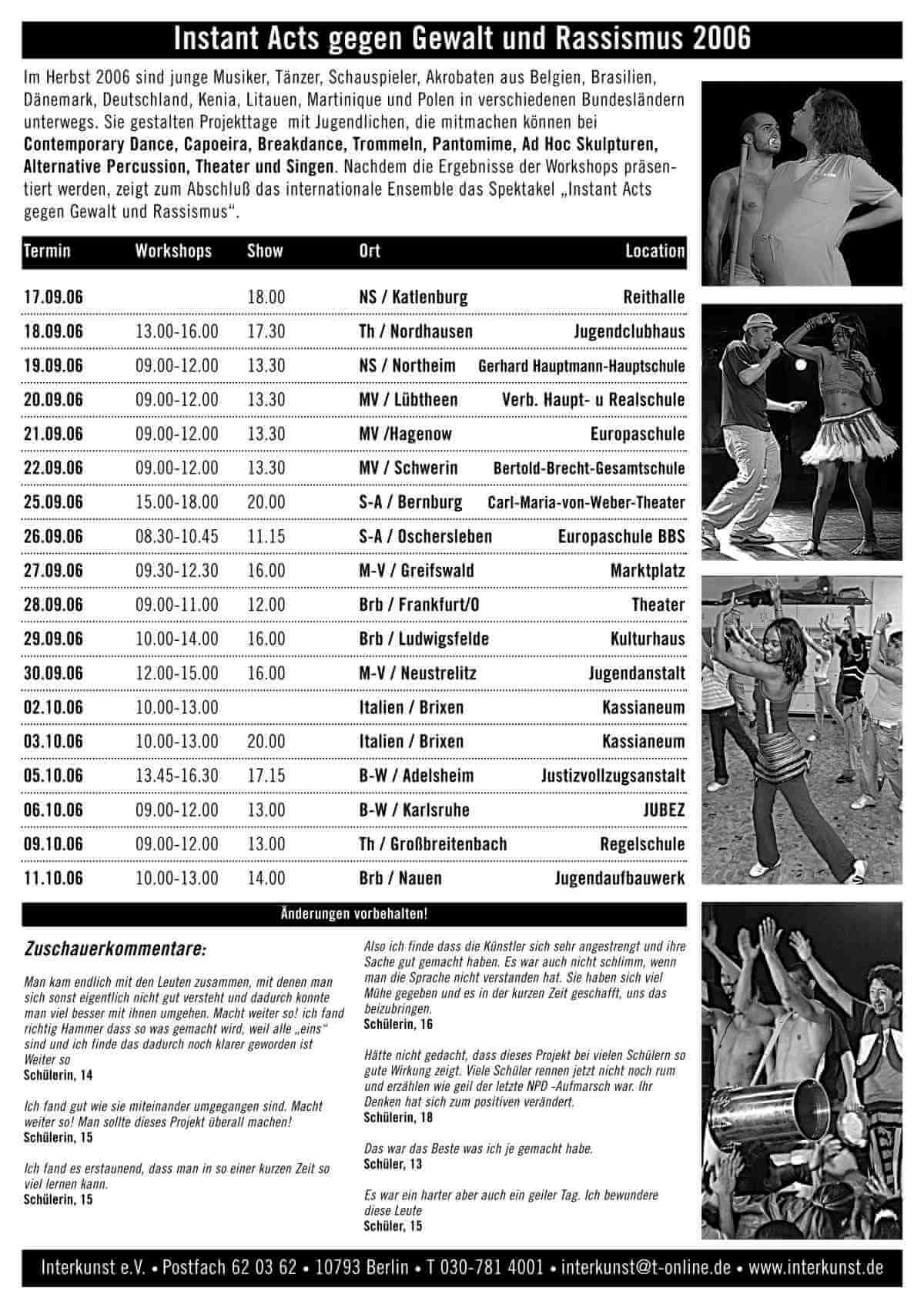 Instant Acts gegen Gewalt und Rassismus 2006