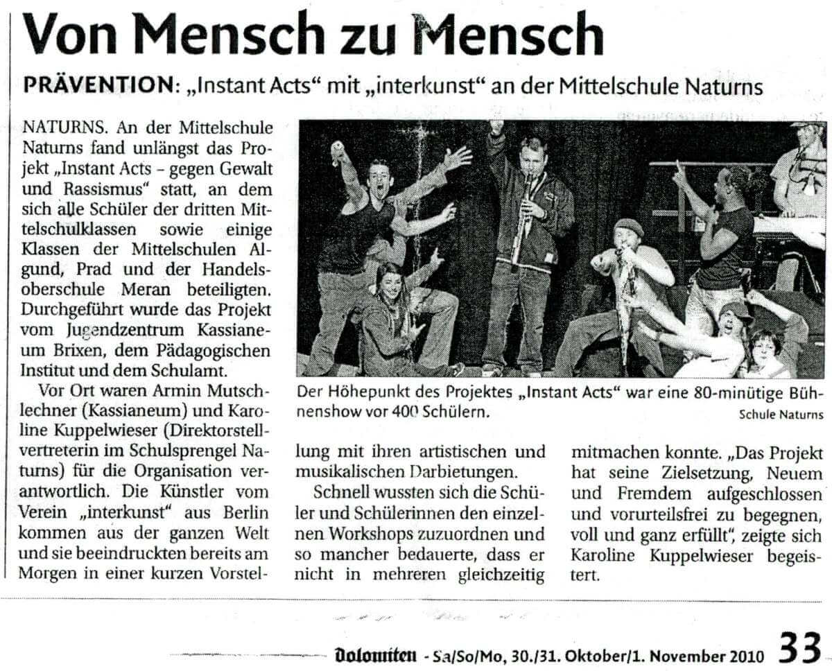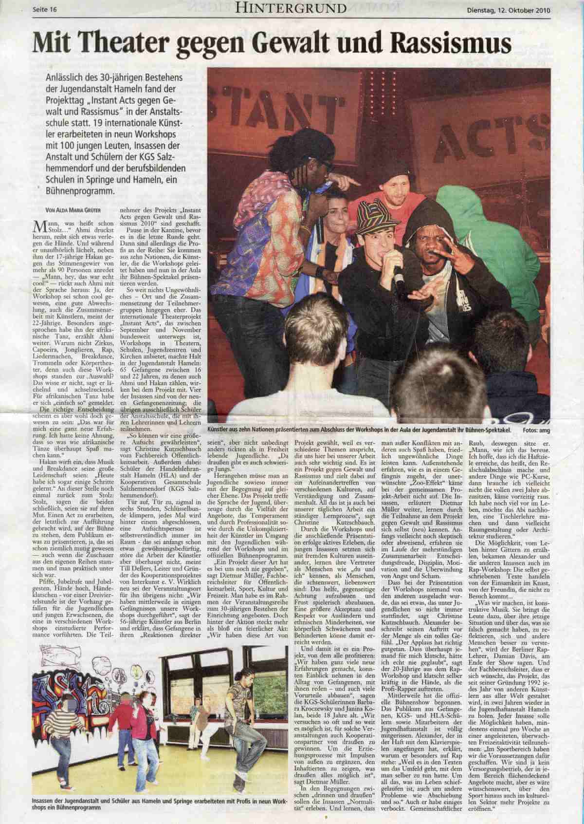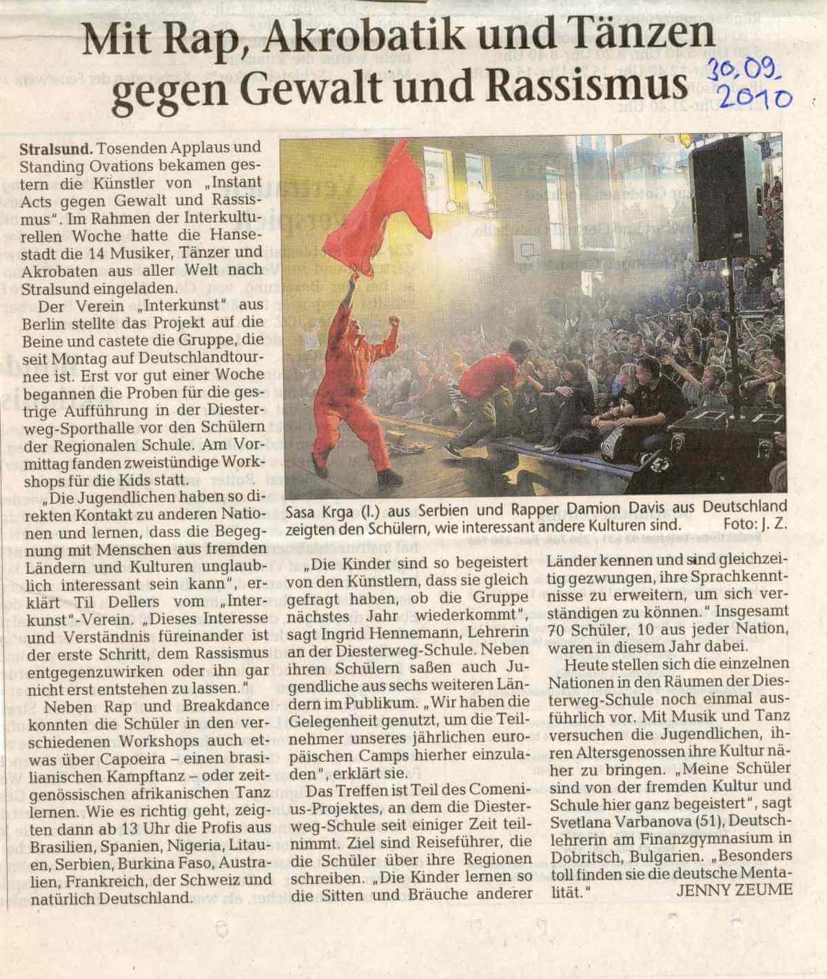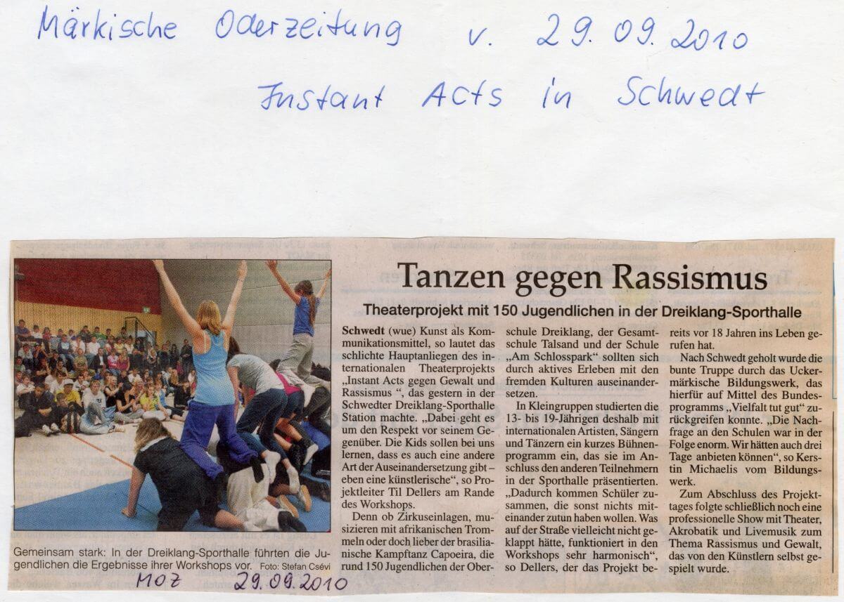 Instant Acts gegen Gewalt und Rassismus 2010