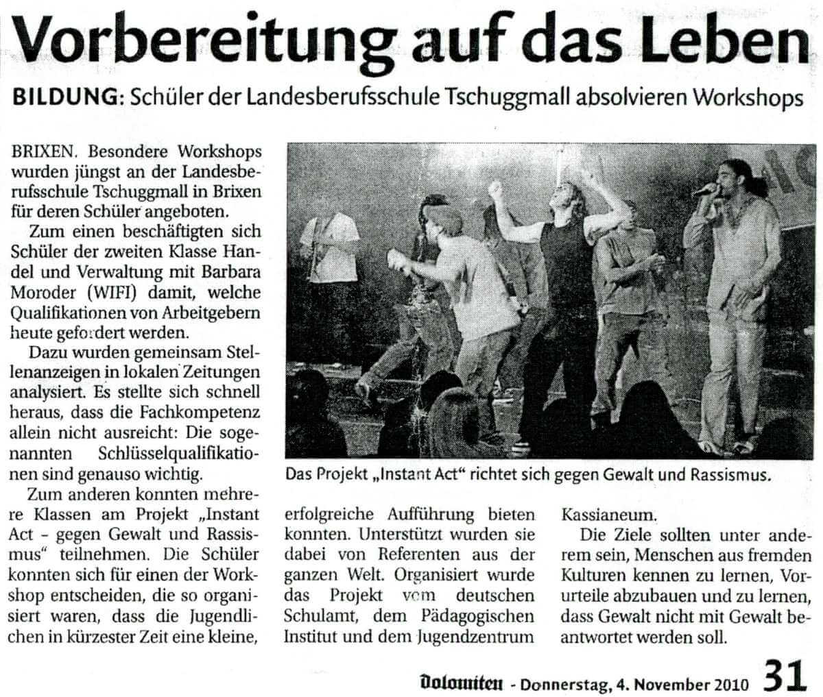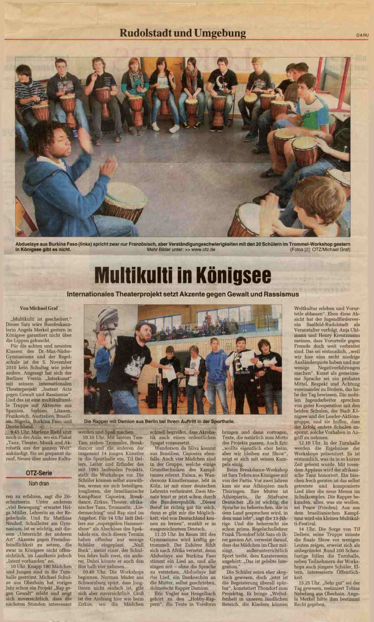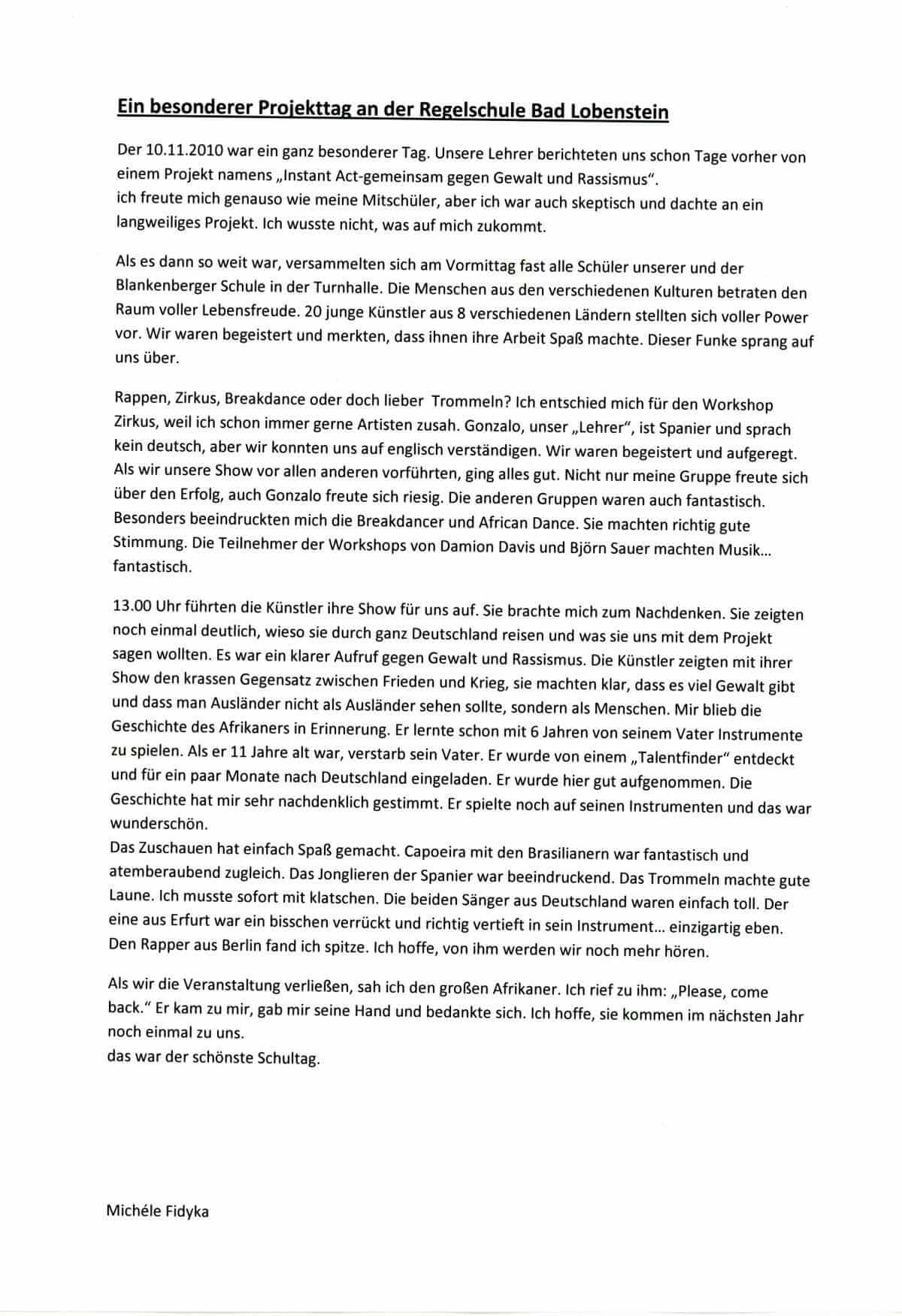 Instant Acts gegen Gewalt und Rassismus 2010
