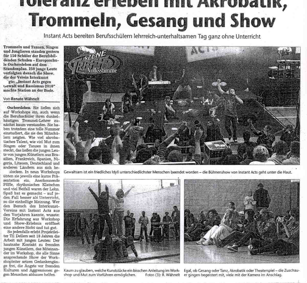 Oschersleben ST - Toleranz erleben mit Akrobatik, Trommeln, Gesang und Show