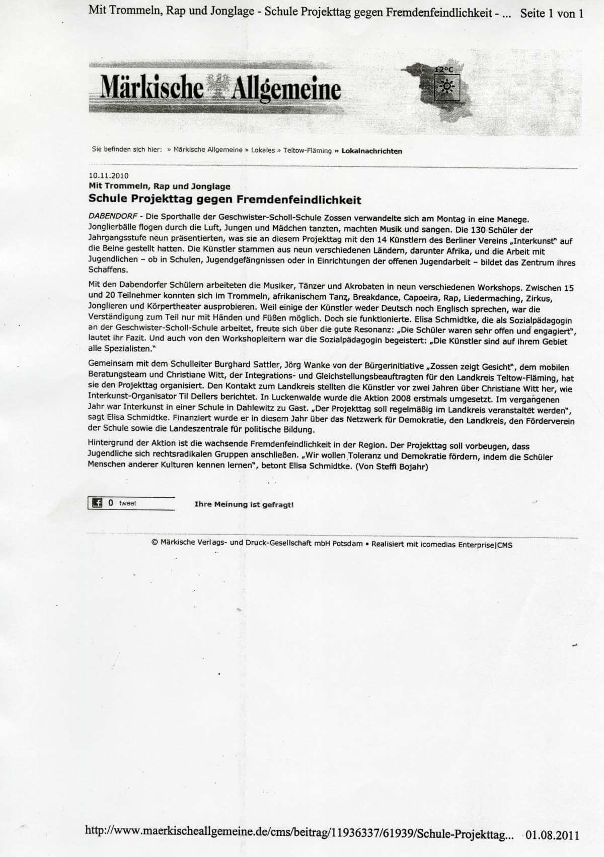 Dabendorf BB - Schule Projekttag gegen Fremdenfeindlichkeit