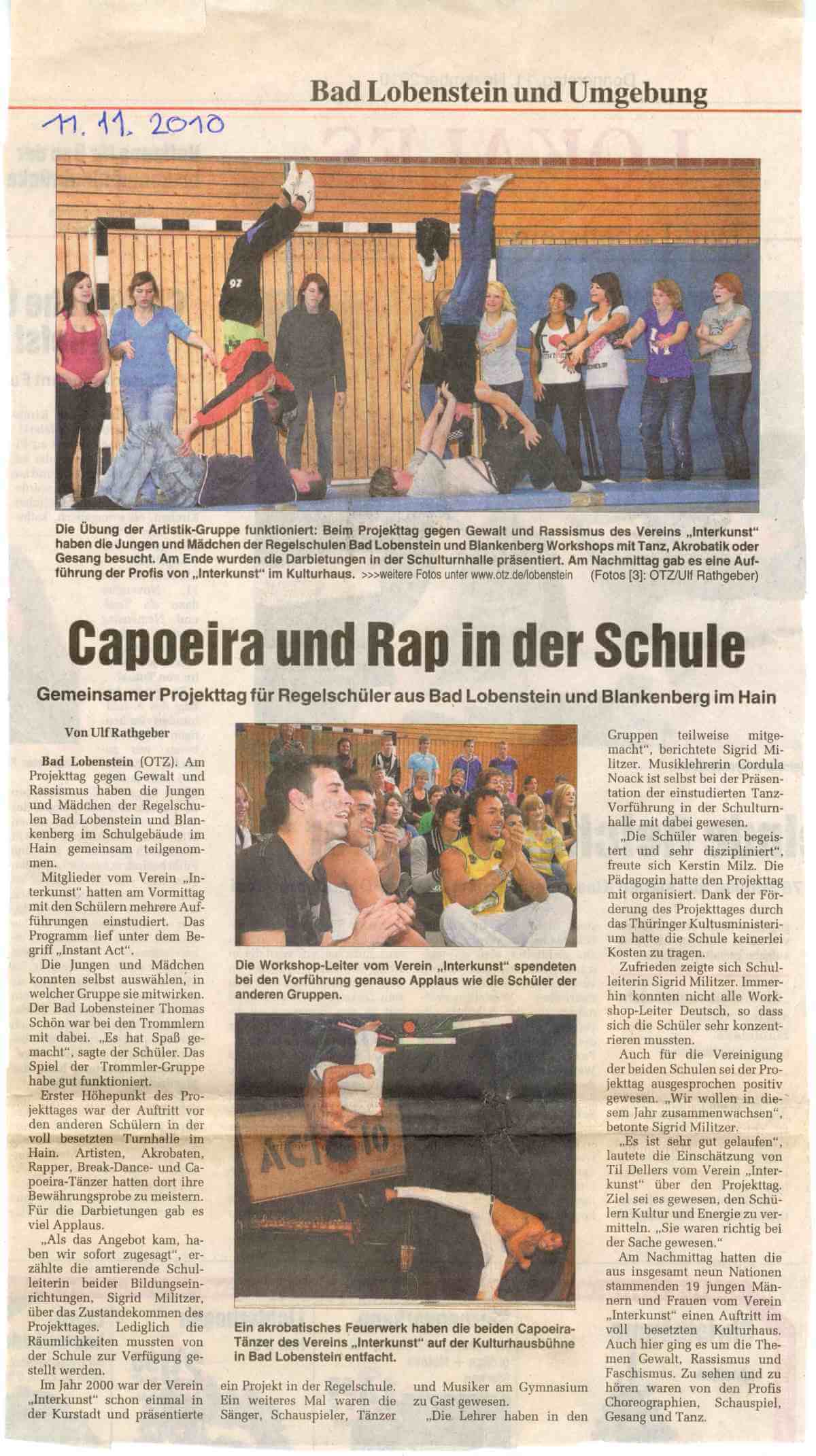 Bad Lobenstein TH - Capoeira und Rap in der Schule