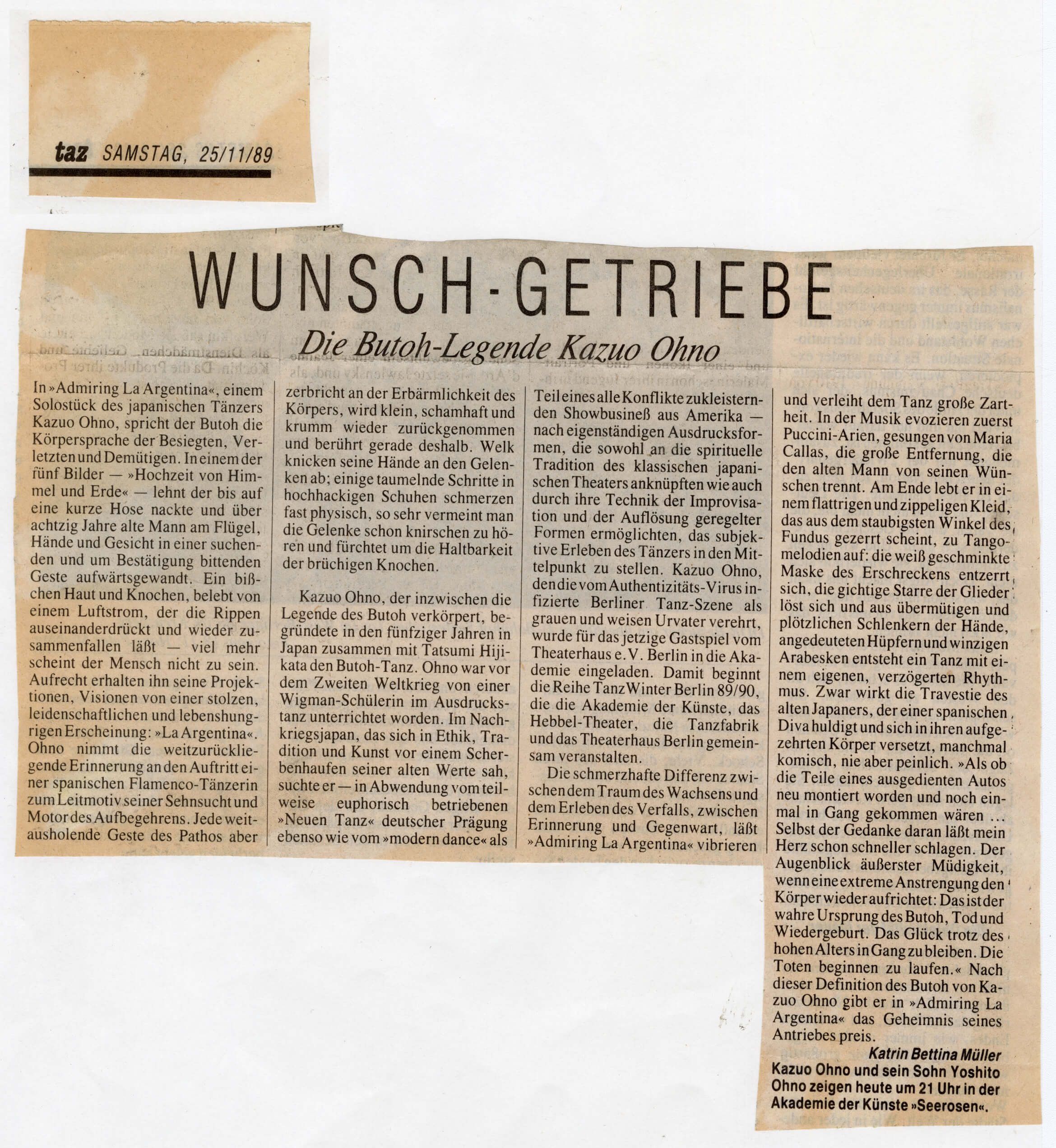 Kazuo Ohno 1989 Programmheft (6 Seiten)
