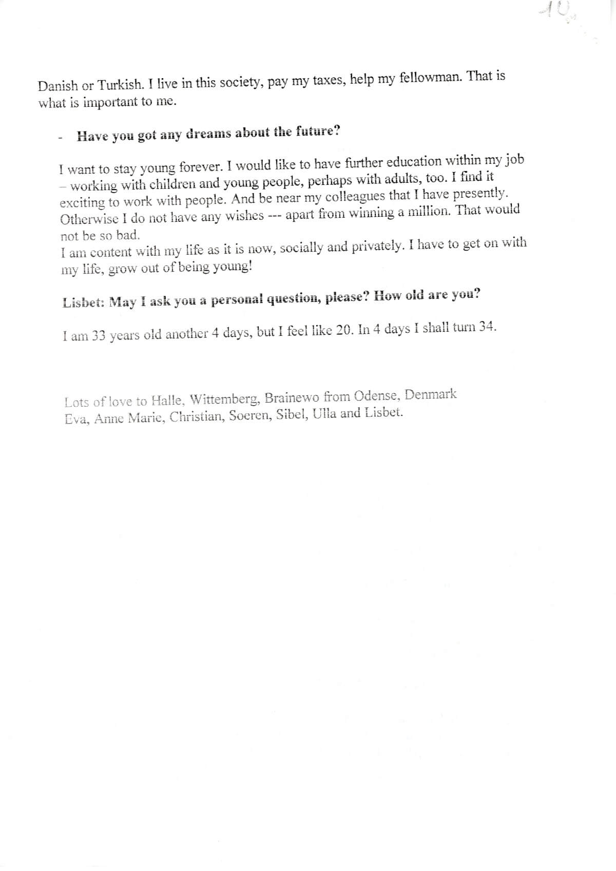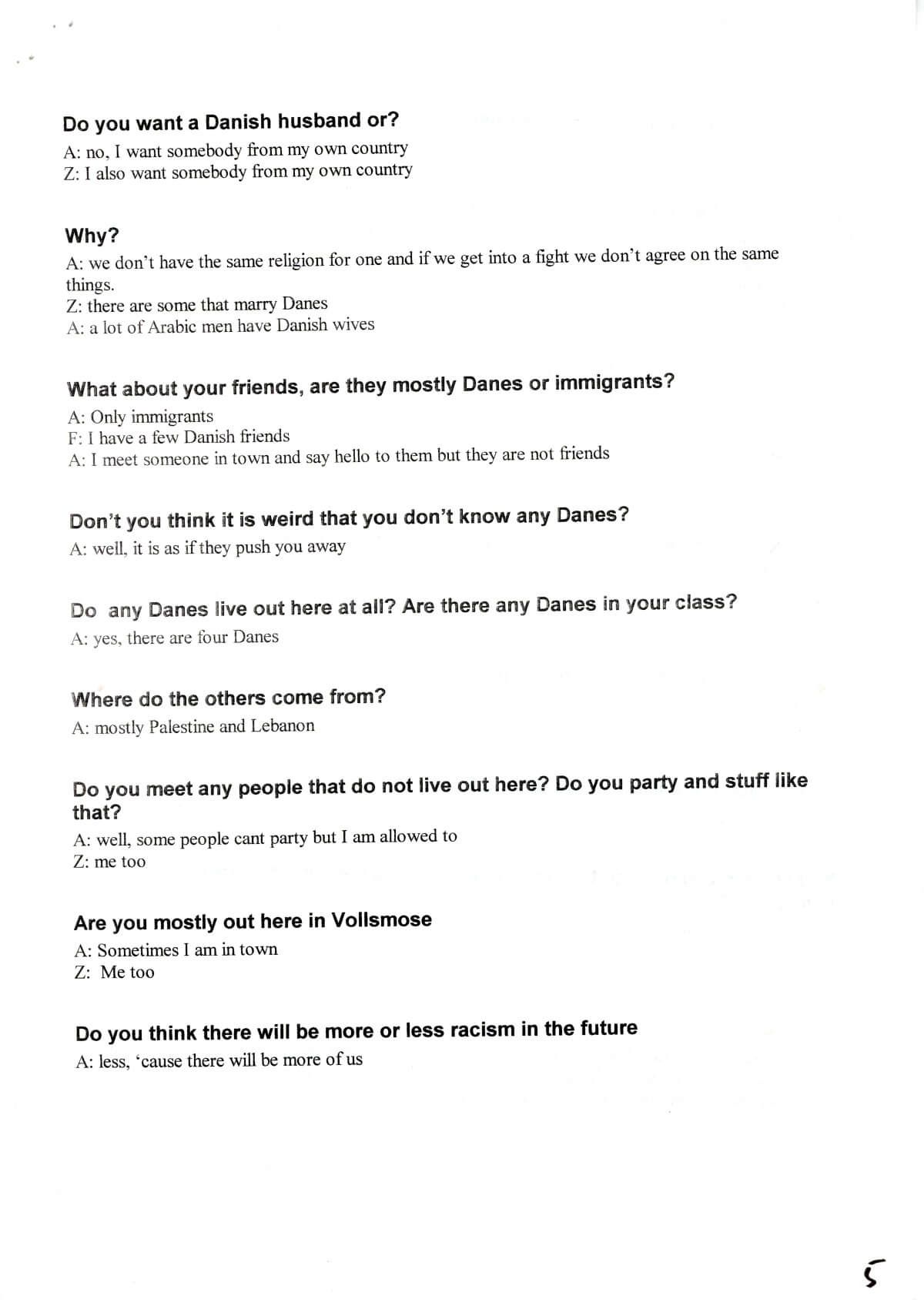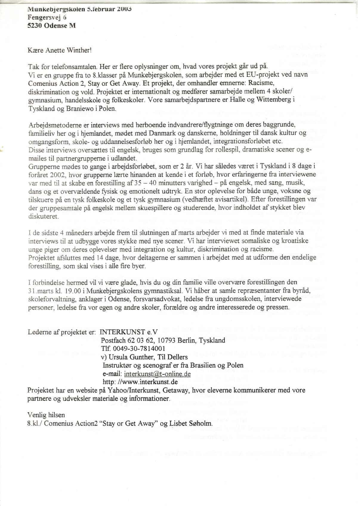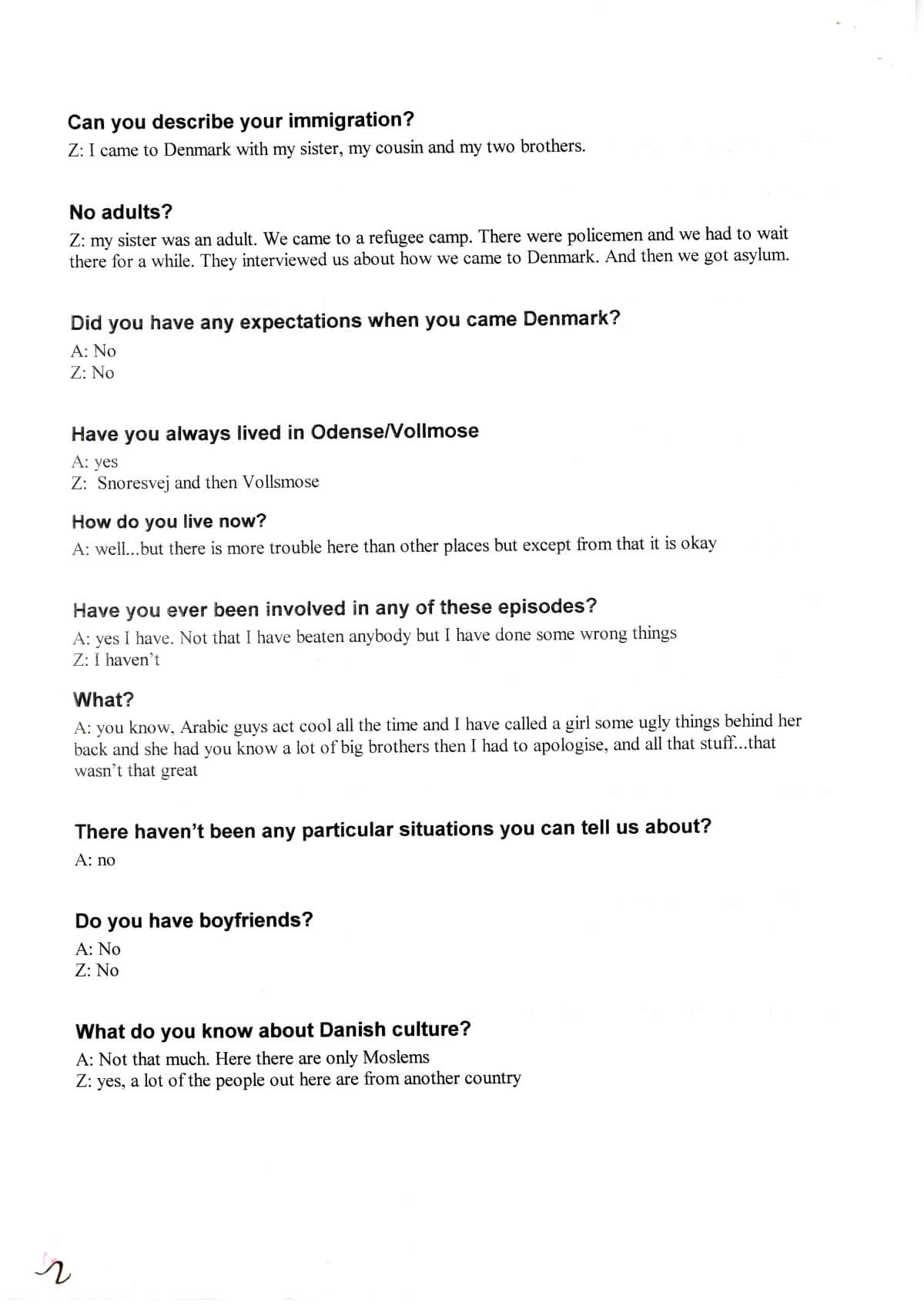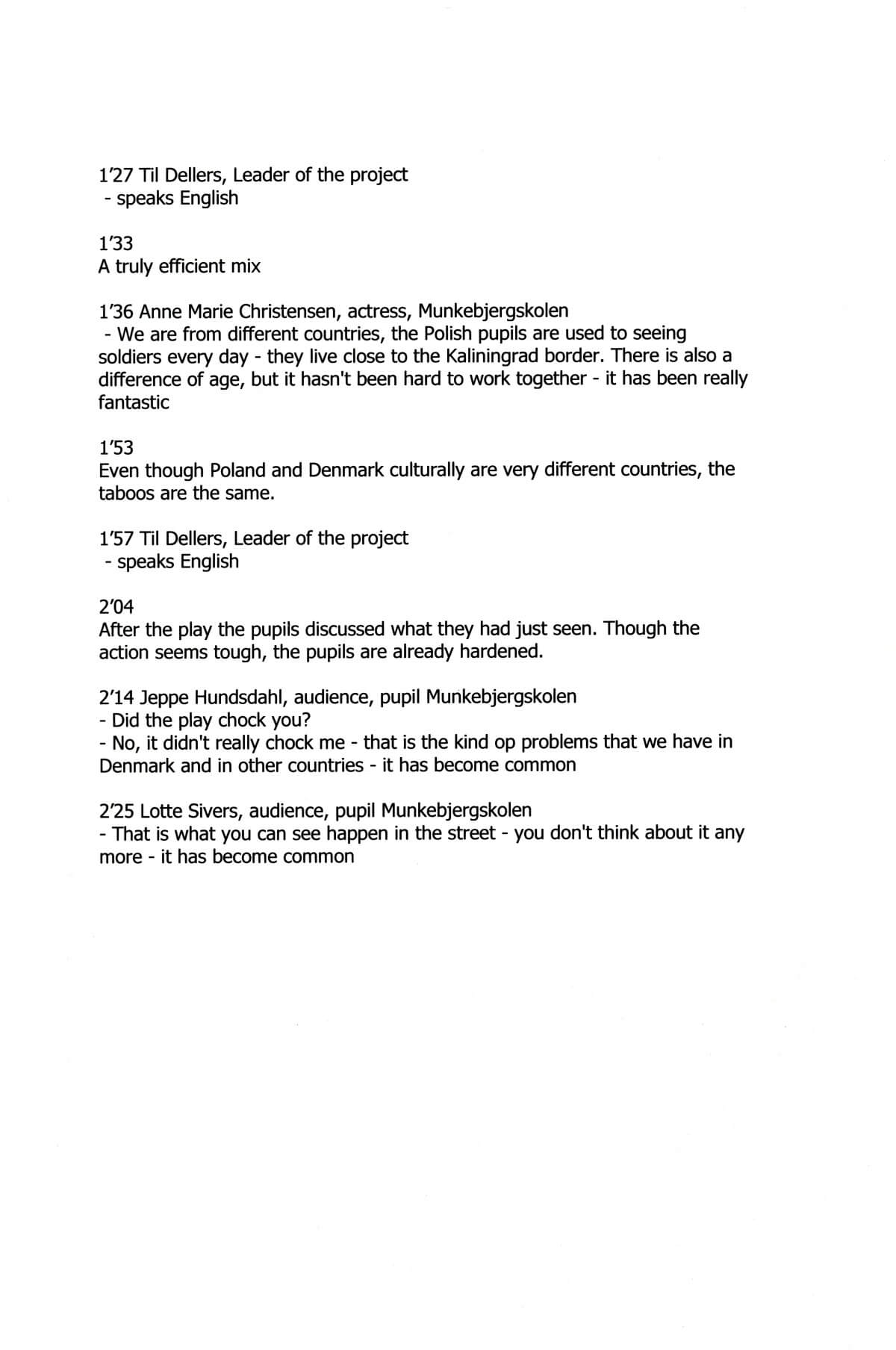 Schüler erarbeiten einen Fragenkatalog zum Thema: Antwort der Jugendkultur zum Verhalten von Gewalt und Rassismus. Gemeinsam werden die besten Fragen ausgesucht und gestellt an Personen gleichen und verschiedenen Alters, an Bekannte, Verwandte, Fremde.