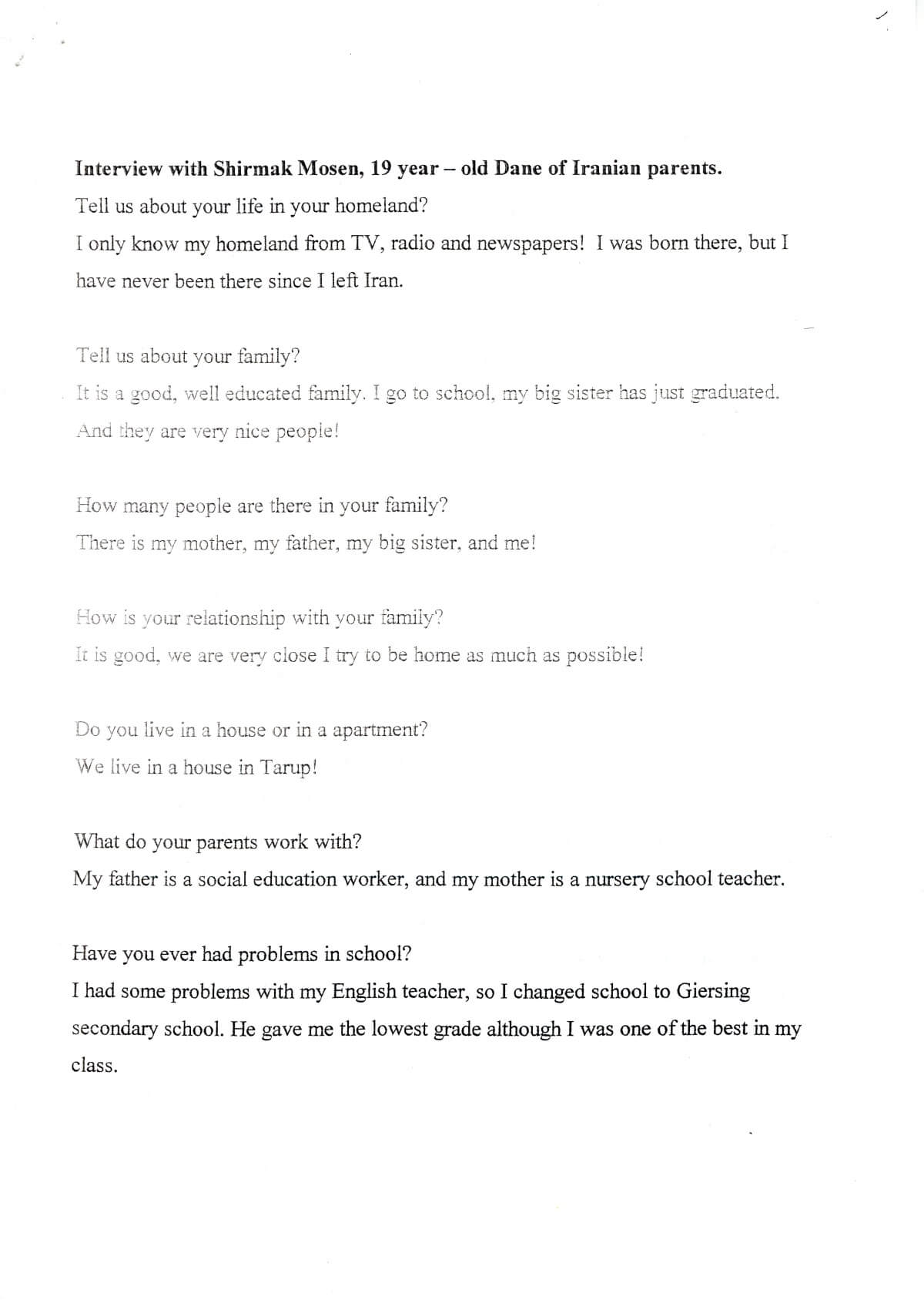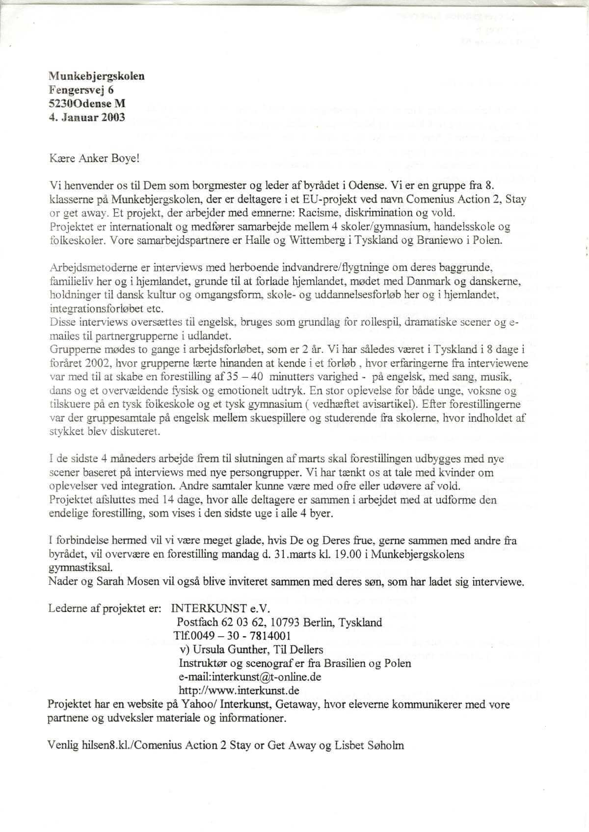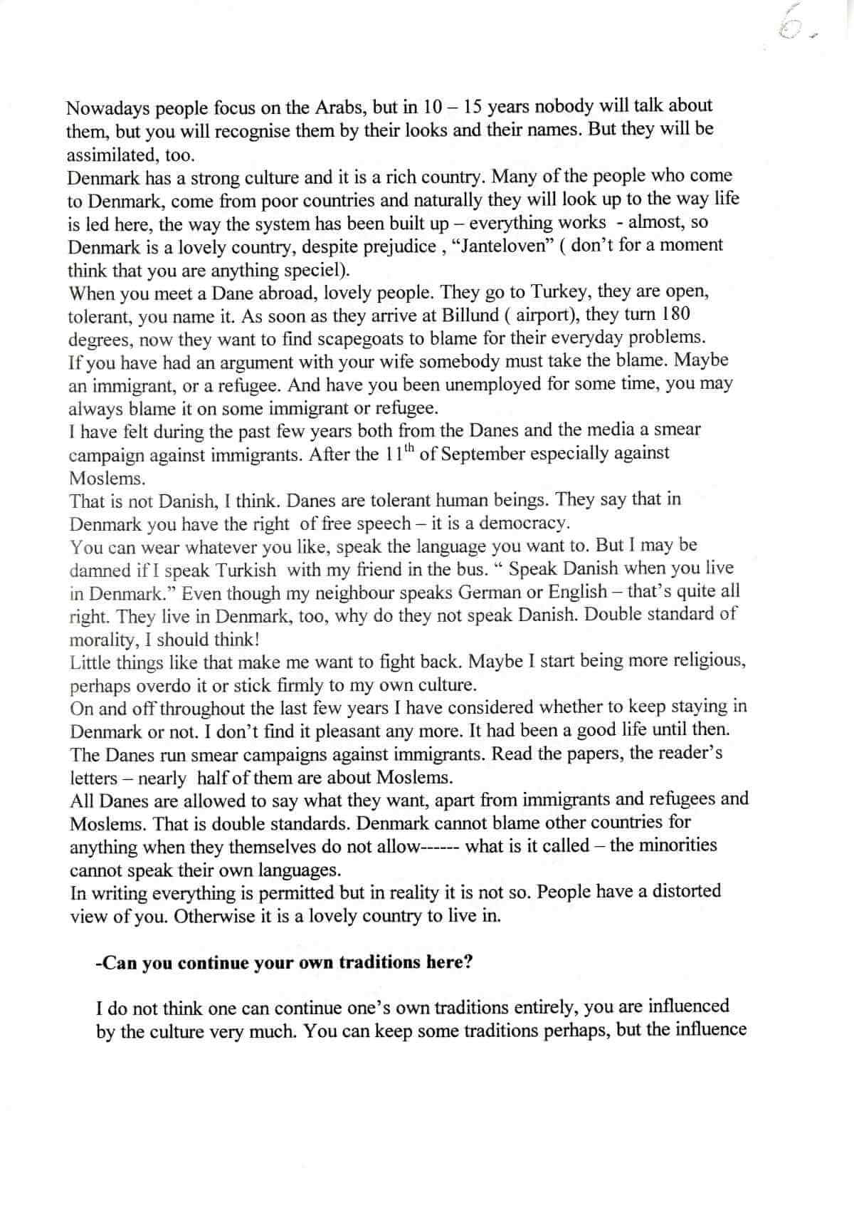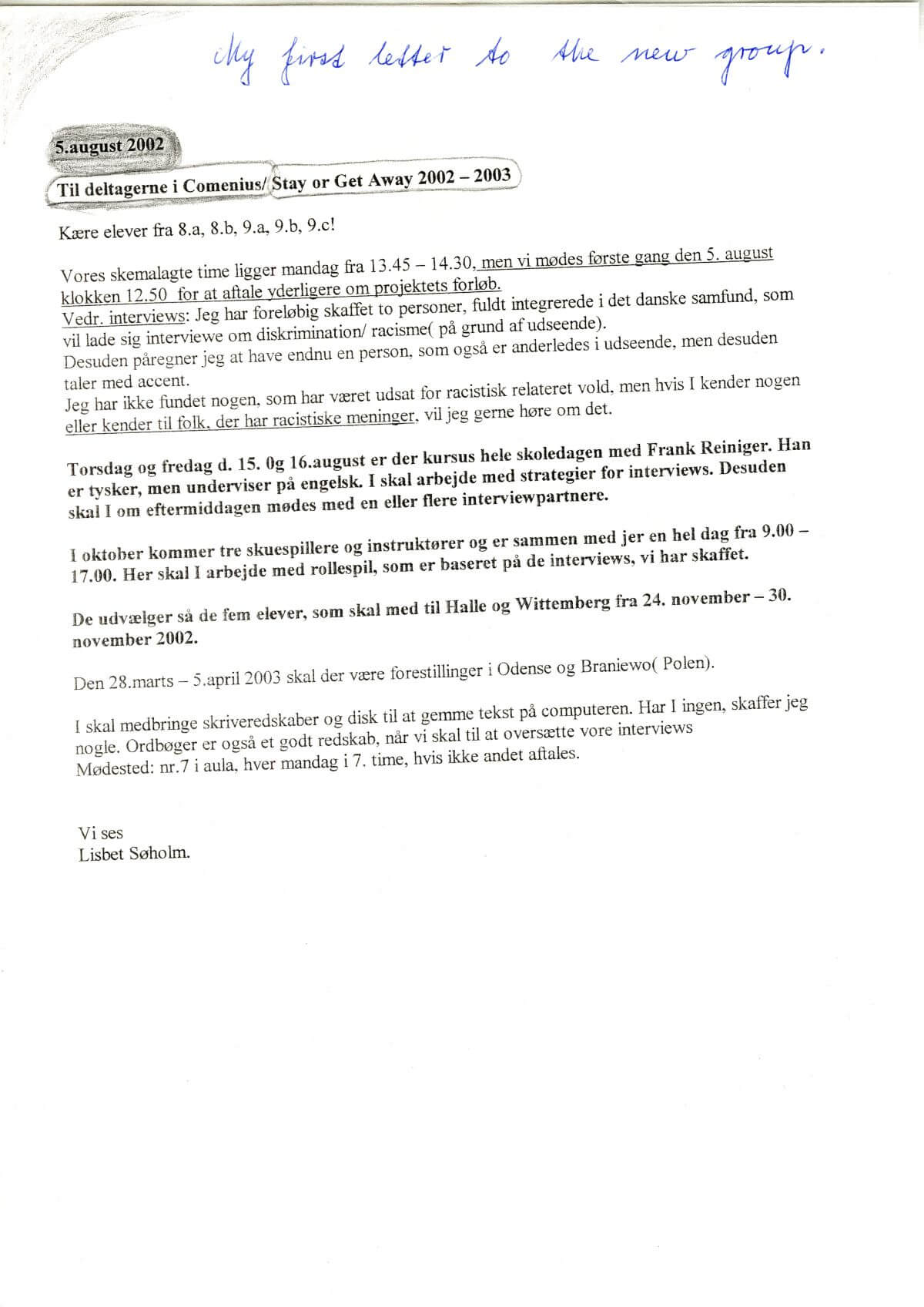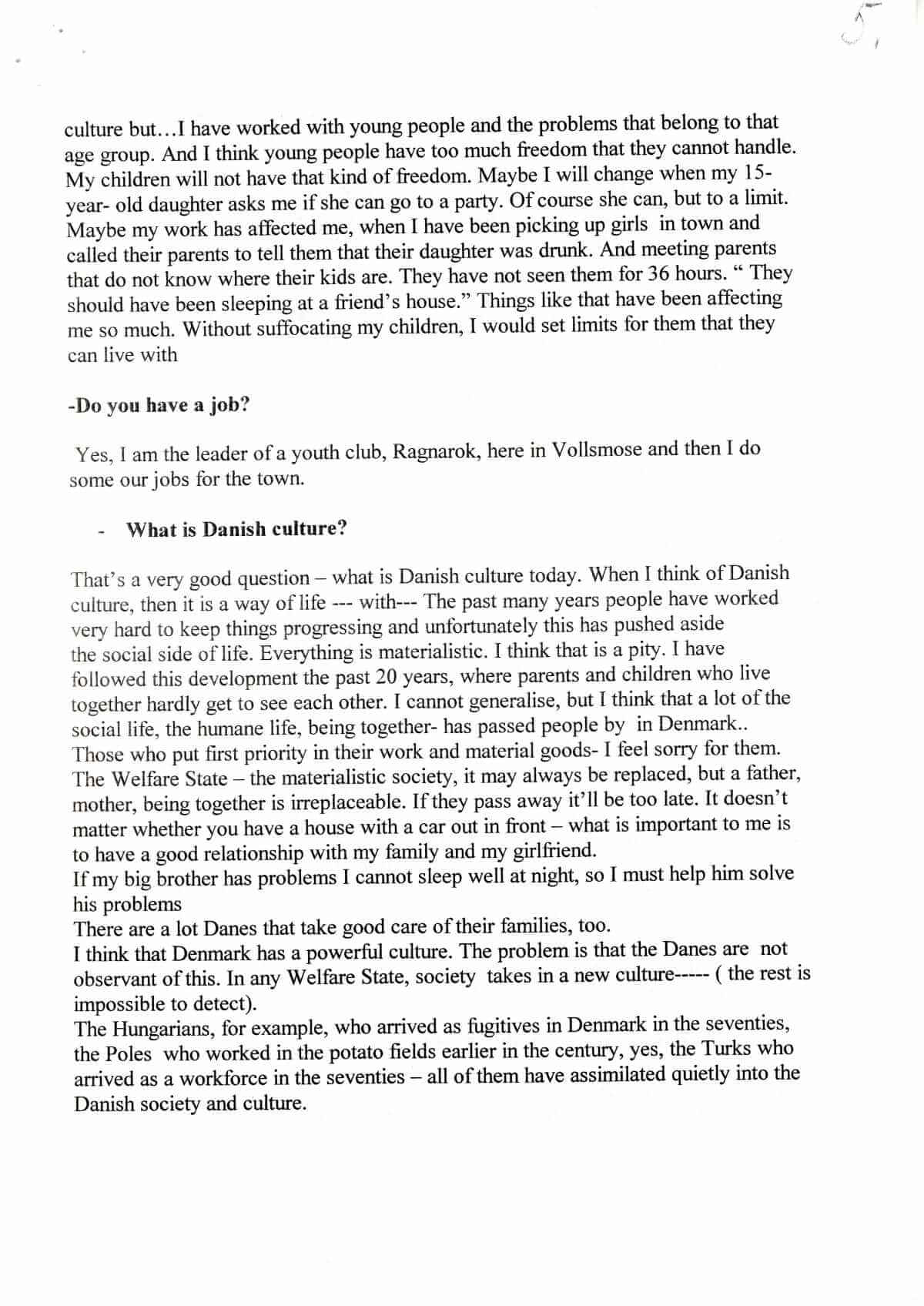 Schüler erarbeiten einen Fragenkatalog zum Thema: Antwort der Jugendkultur zum Verhalten von Gewalt und Rassismus. Gemeinsam werden die besten Fragen ausgesucht und gestellt an Personen gleichen und verschiedenen Alters, an Bekannte, Verwandte, Fremde.