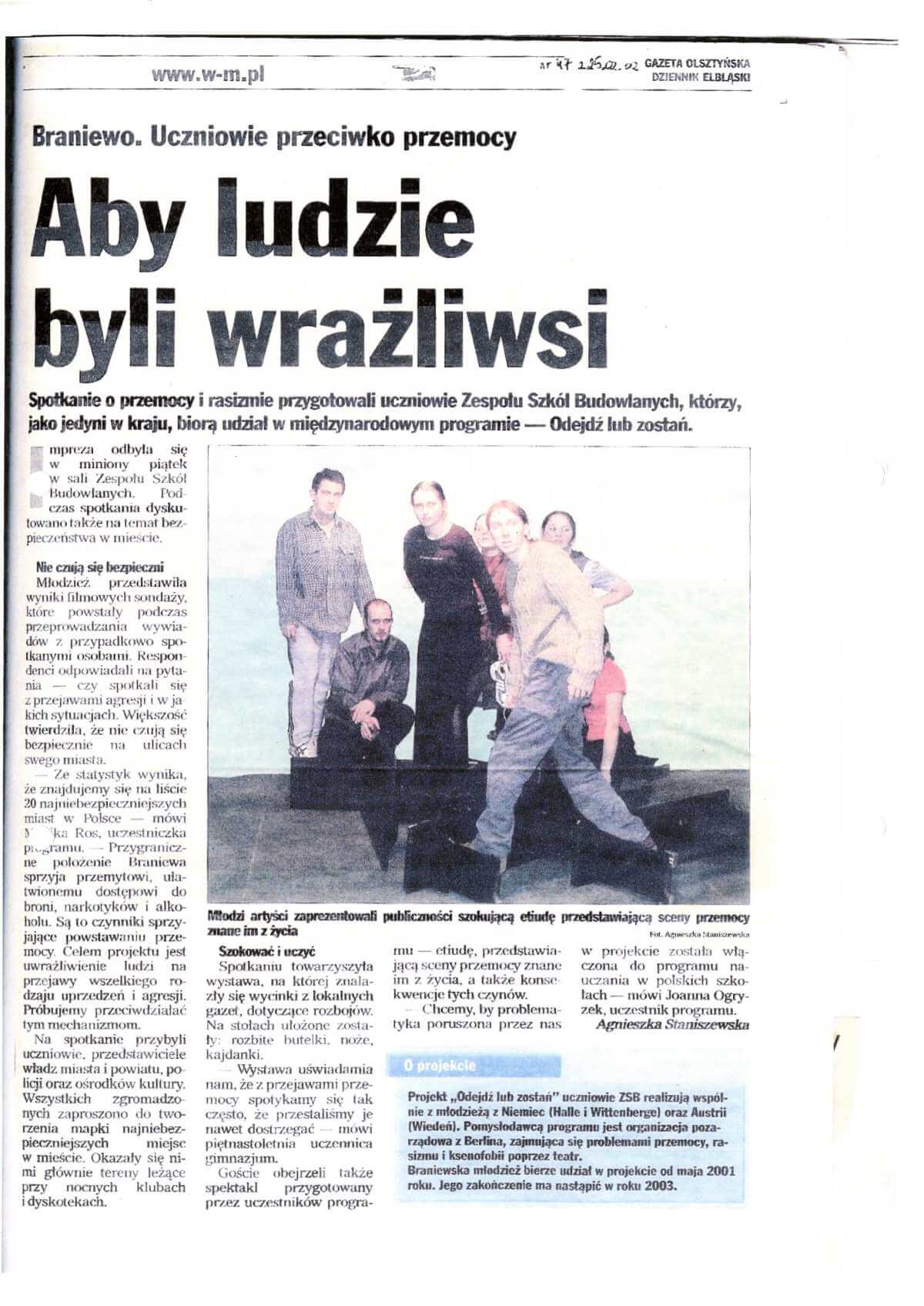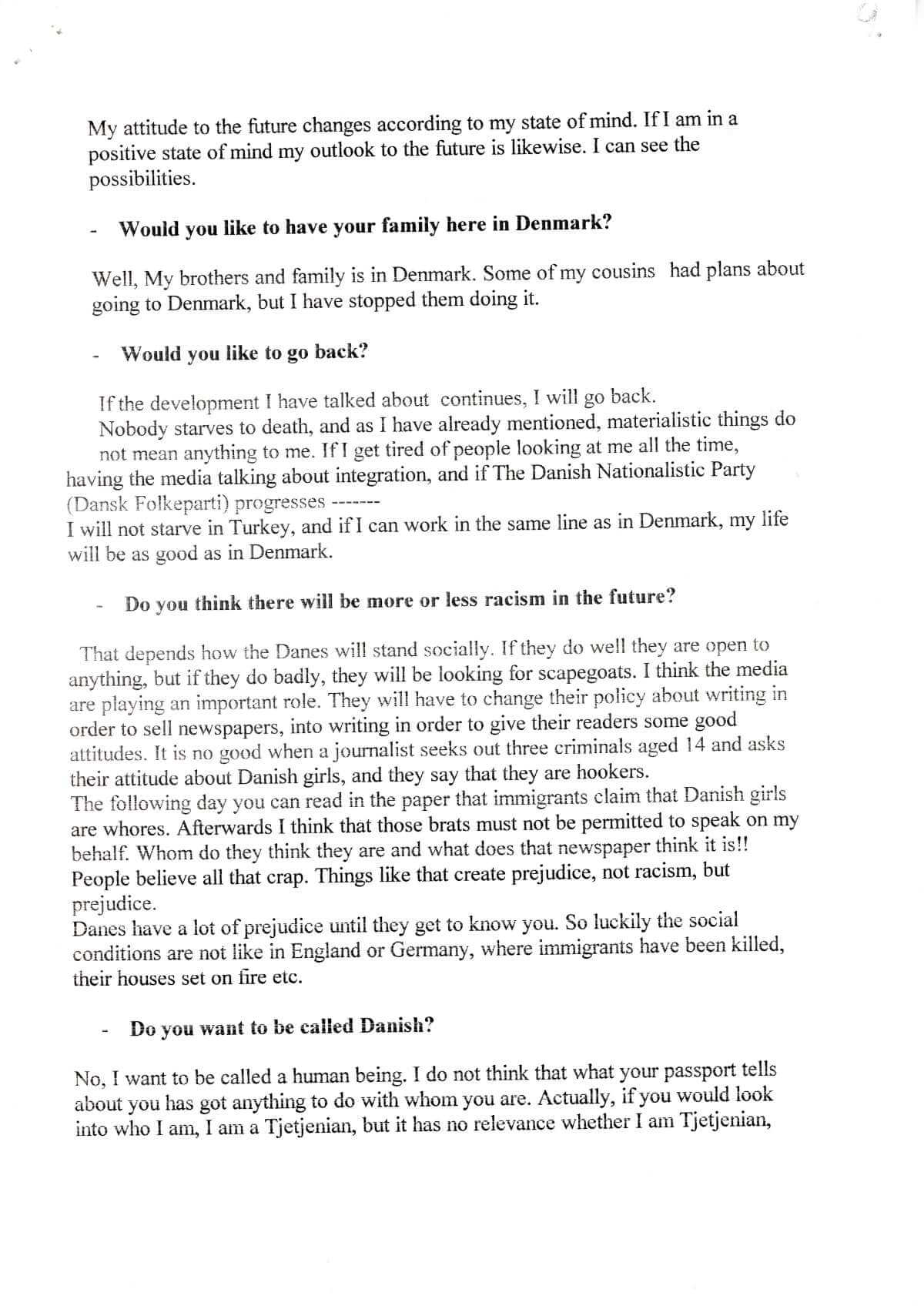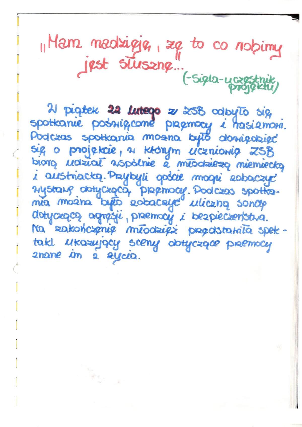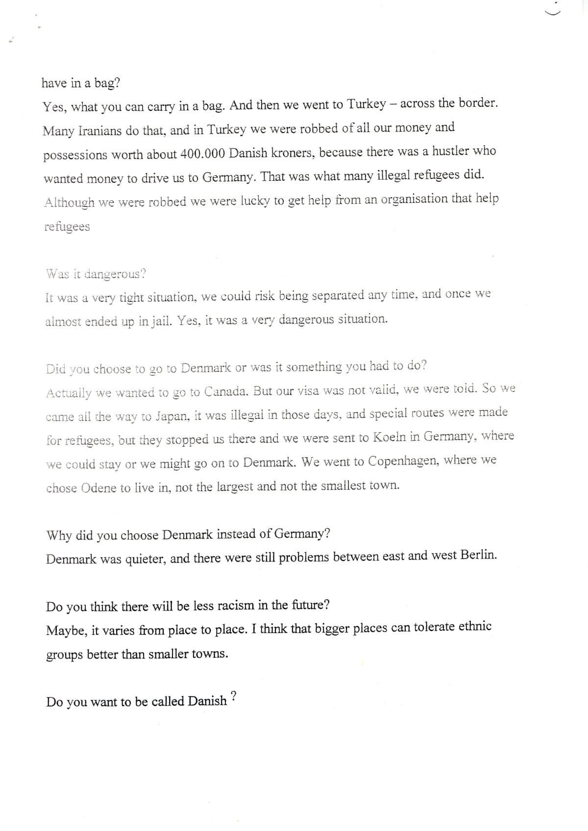 Schüler erarbeiten einen Fragenkatalog zum Thema: Antwort der Jugendkultur zum Verhalten von Gewalt und Rassismus. Gemeinsam werden die besten Fragen ausgesucht und gestellt an Personen gleichen und verschiedenen Alters, an Bekannte, Verwandte, Fremde.