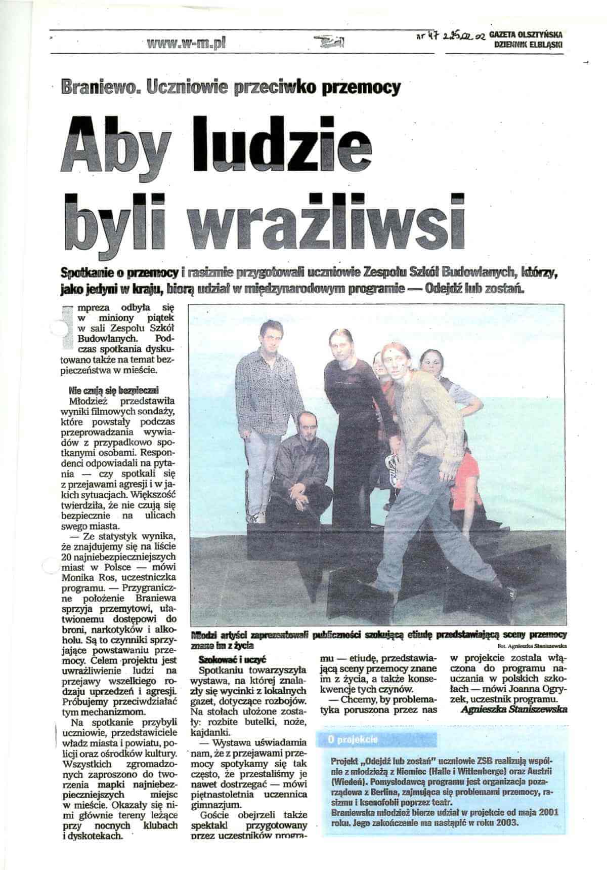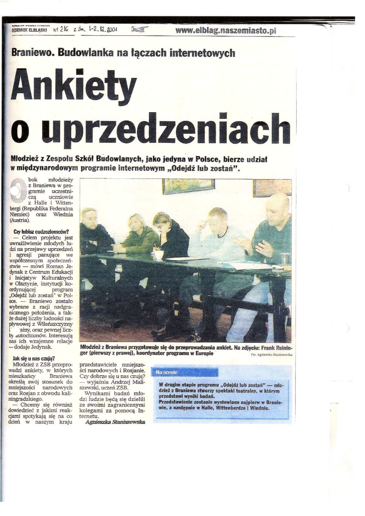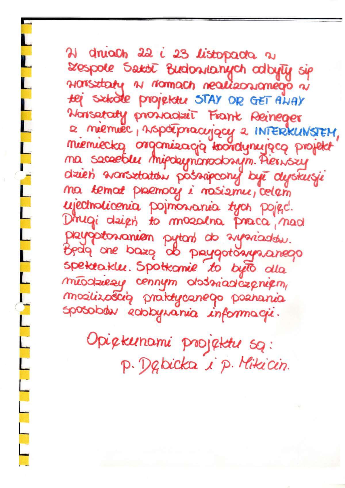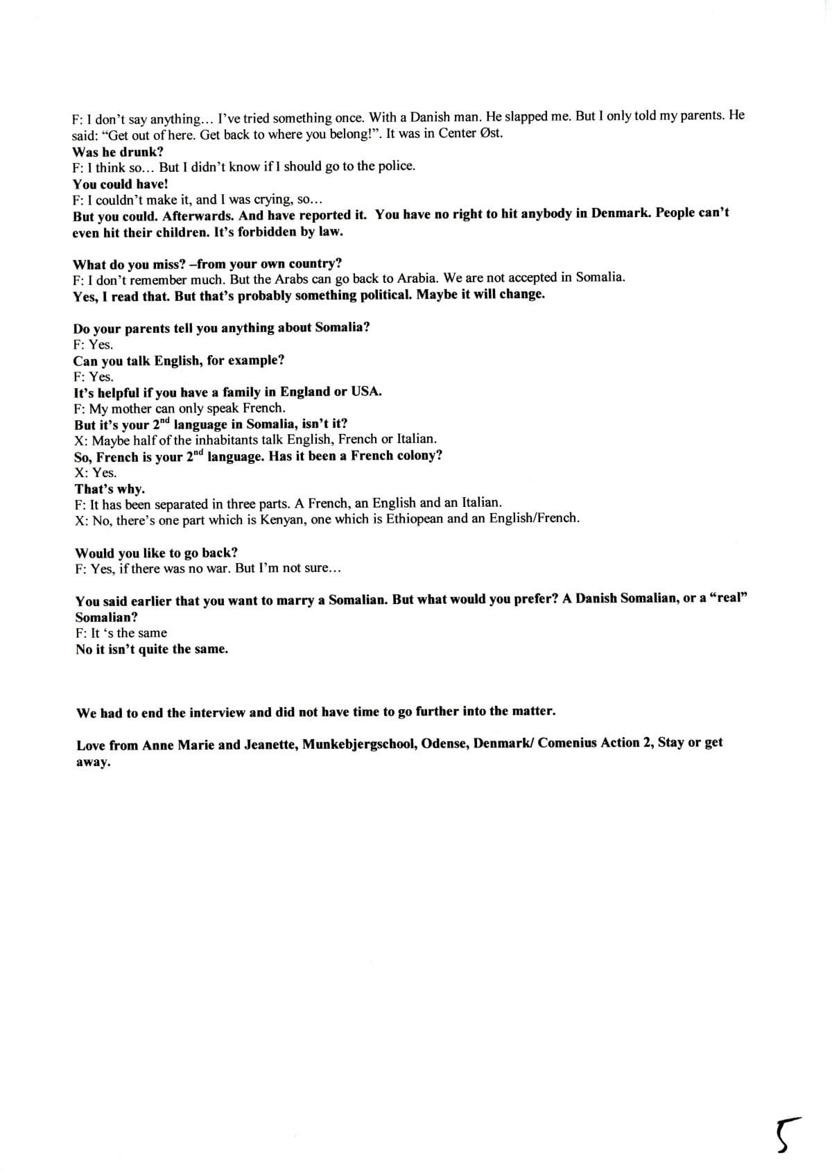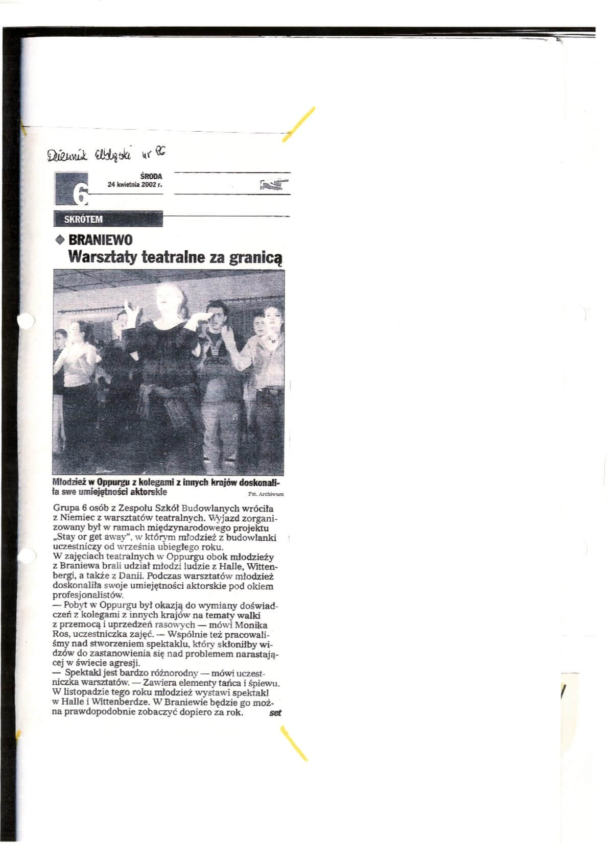 Schüler erarbeiten einen Fragenkatalog zum Thema: Antwort der Jugendkultur zum Verhalten von Gewalt und Rassismus. Gemeinsam werden die besten Fragen ausgesucht und gestellt an Personen gleichen und verschiedenen Alters, an Bekannte, Verwandte, Fremde.
