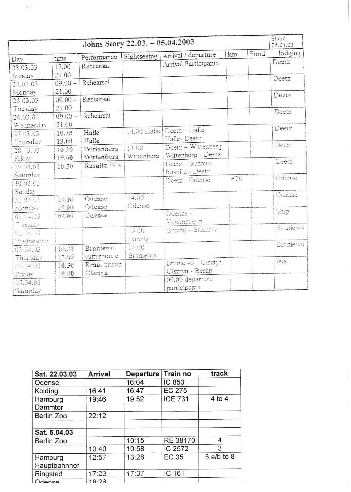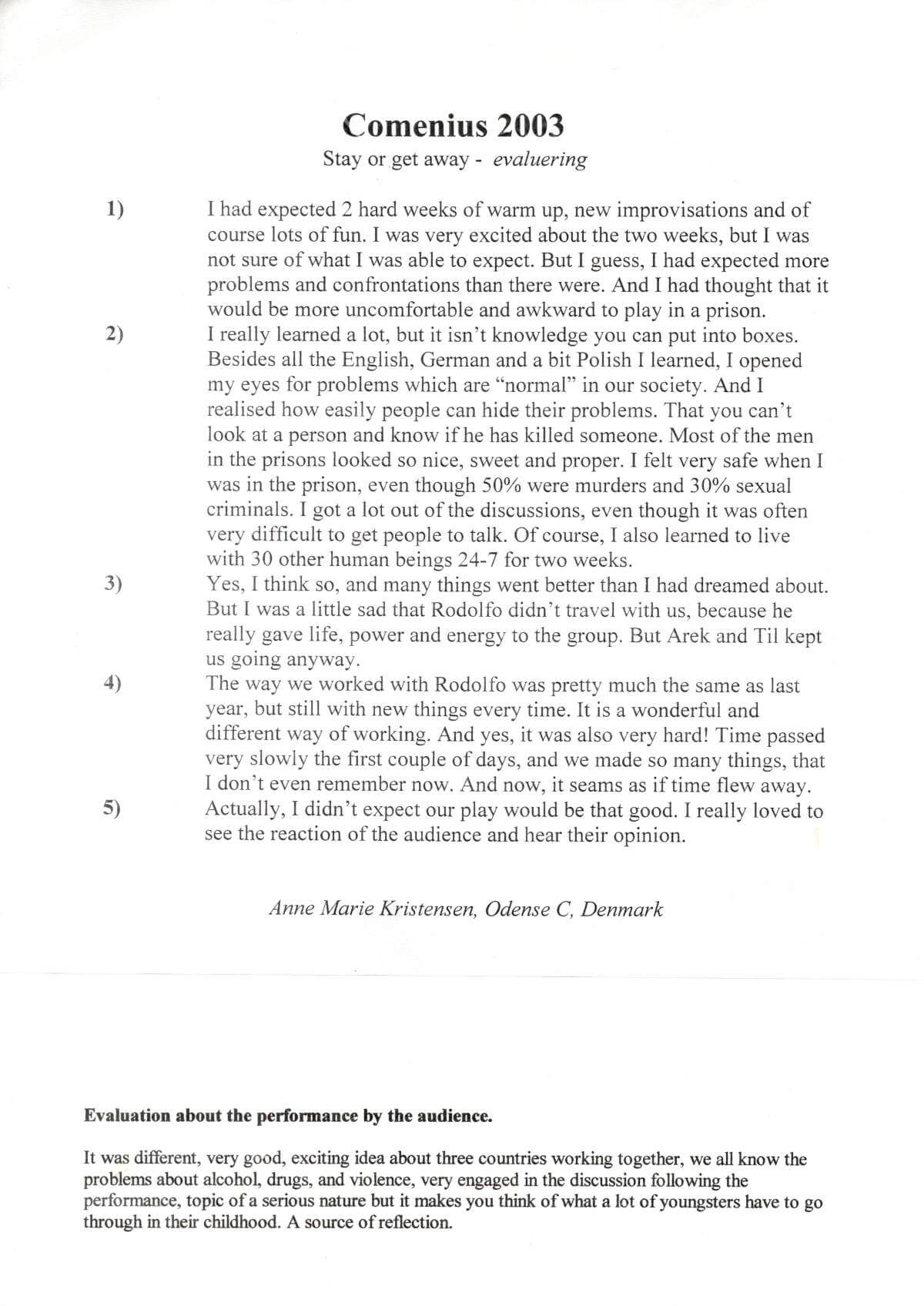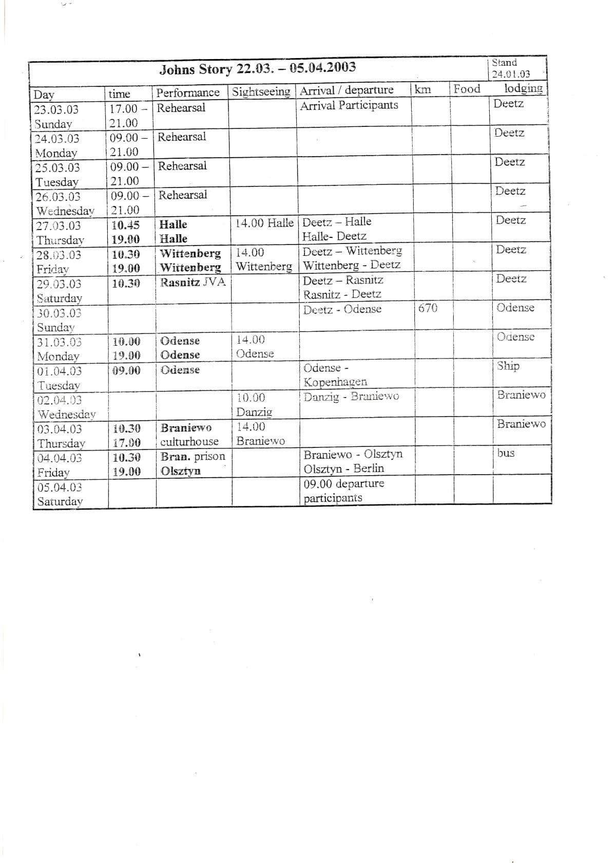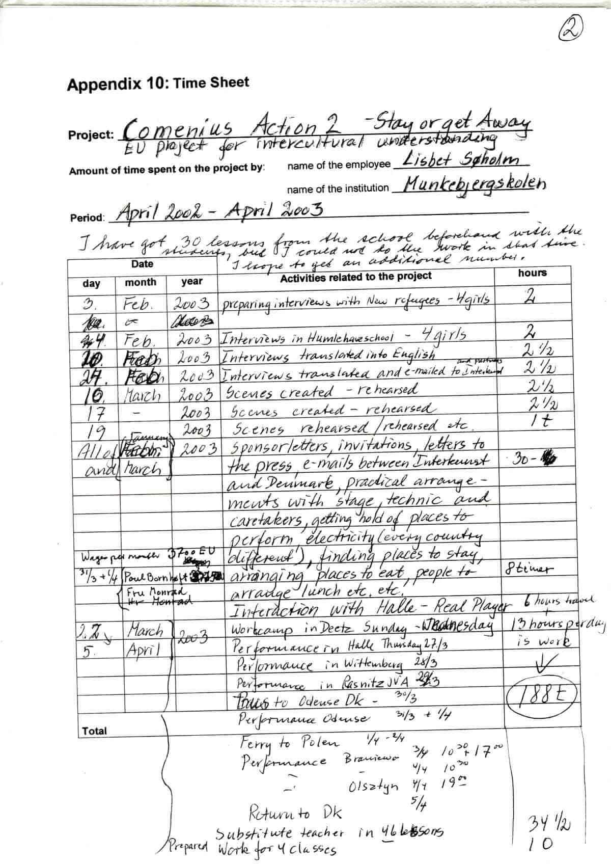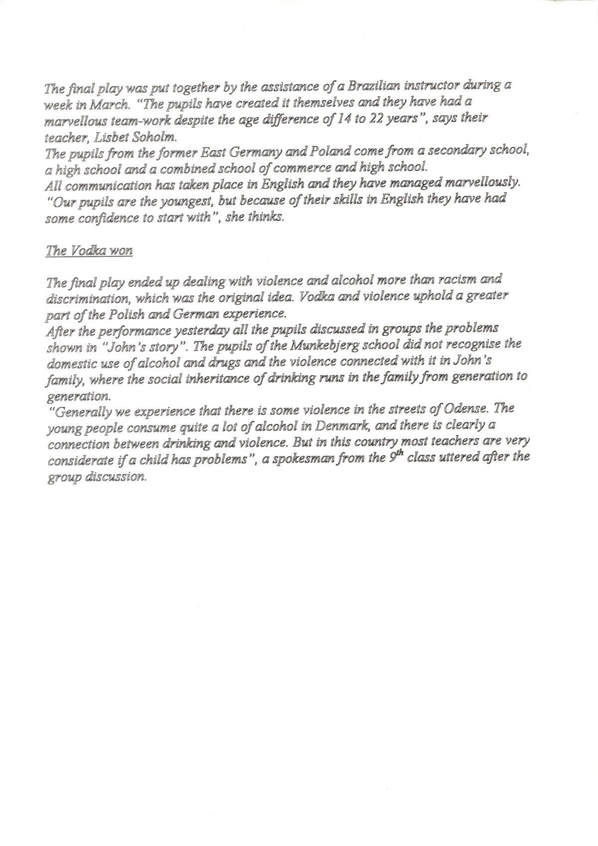 Die Projektleiter der Partnerschulen treffen sich regelmäßig in einem der Partnerländer aus Anlass solcher Aufführungen. Dabei werden die Ergebnisse analysiert und die Erfahrungen für die nächsten Arbeitsabschnitte abgesprochen.