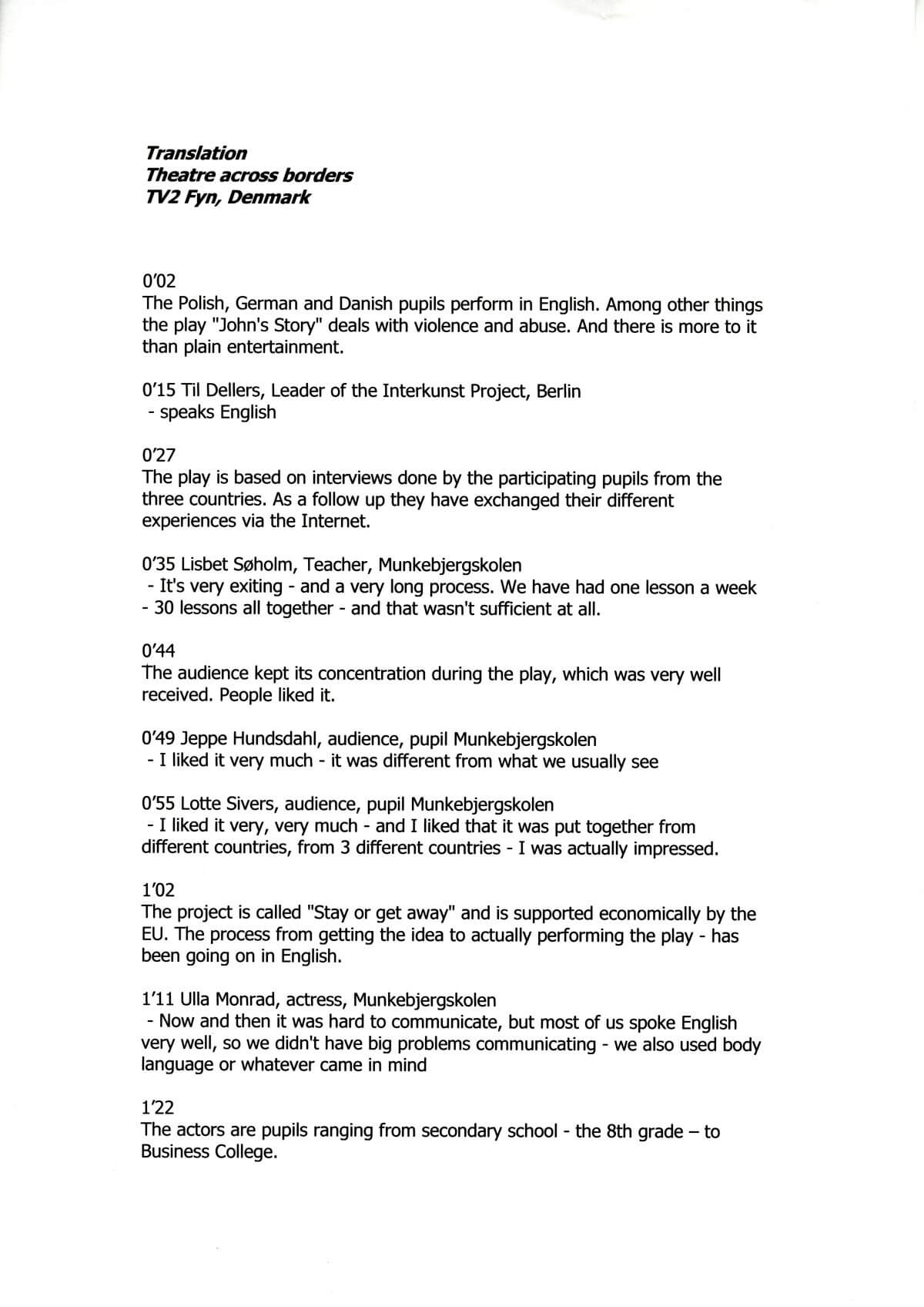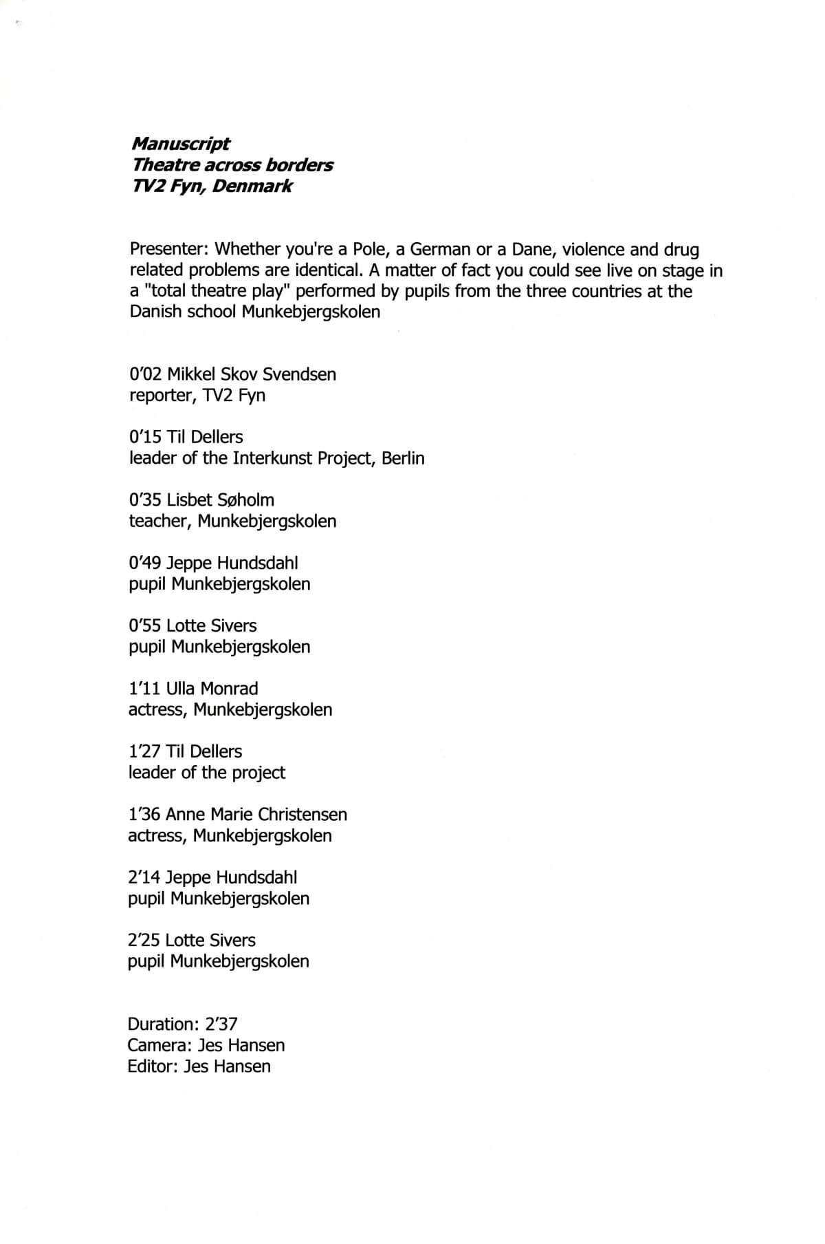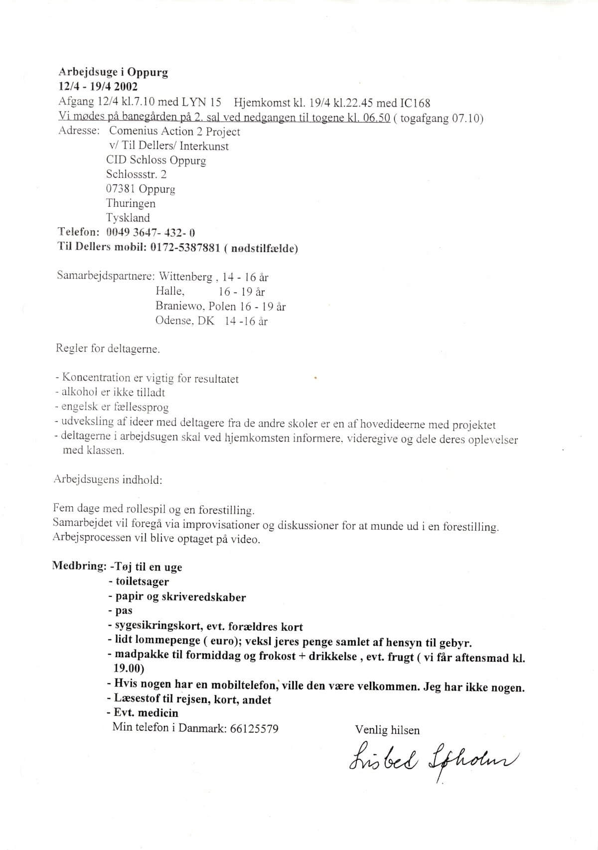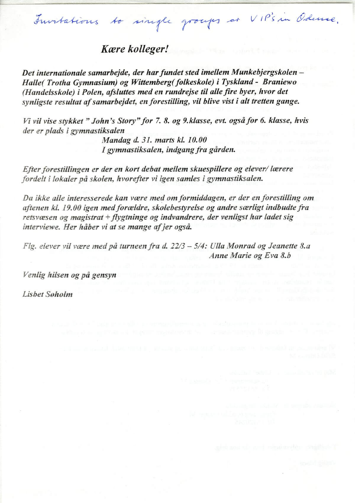Die Projektleiter der Partnerschulen treffen sich regelmäßig in einem der Partnerländer aus Anlass solcher Aufführungen. Dabei werden die Ergebnisse analysiert und die Erfahrungen für die nächsten Arbeitsabschnitte abgesprochen.